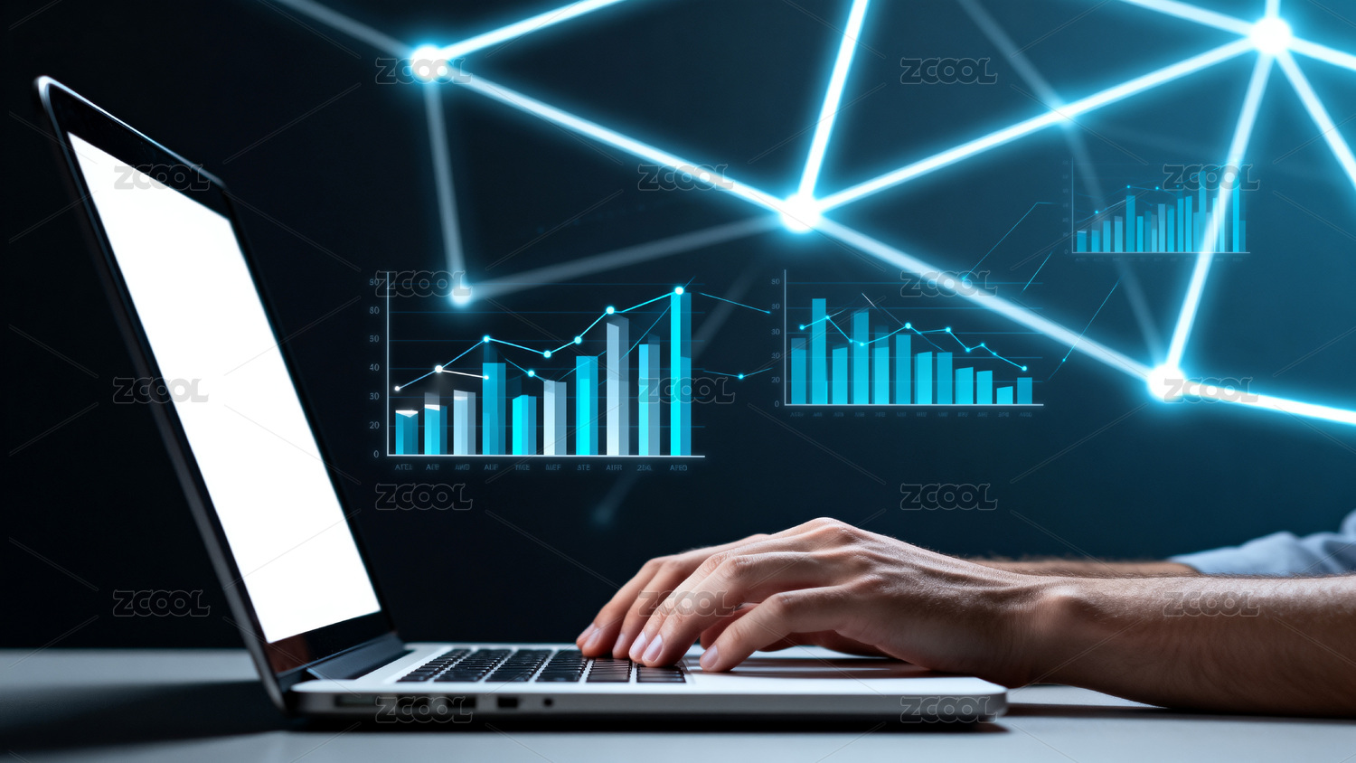 双手操作显示数据图表的笔记本电脑
