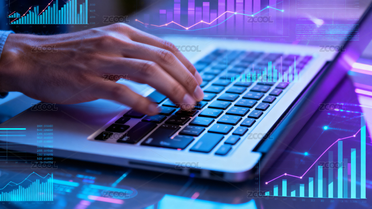 双手操作键盘数据图表分析