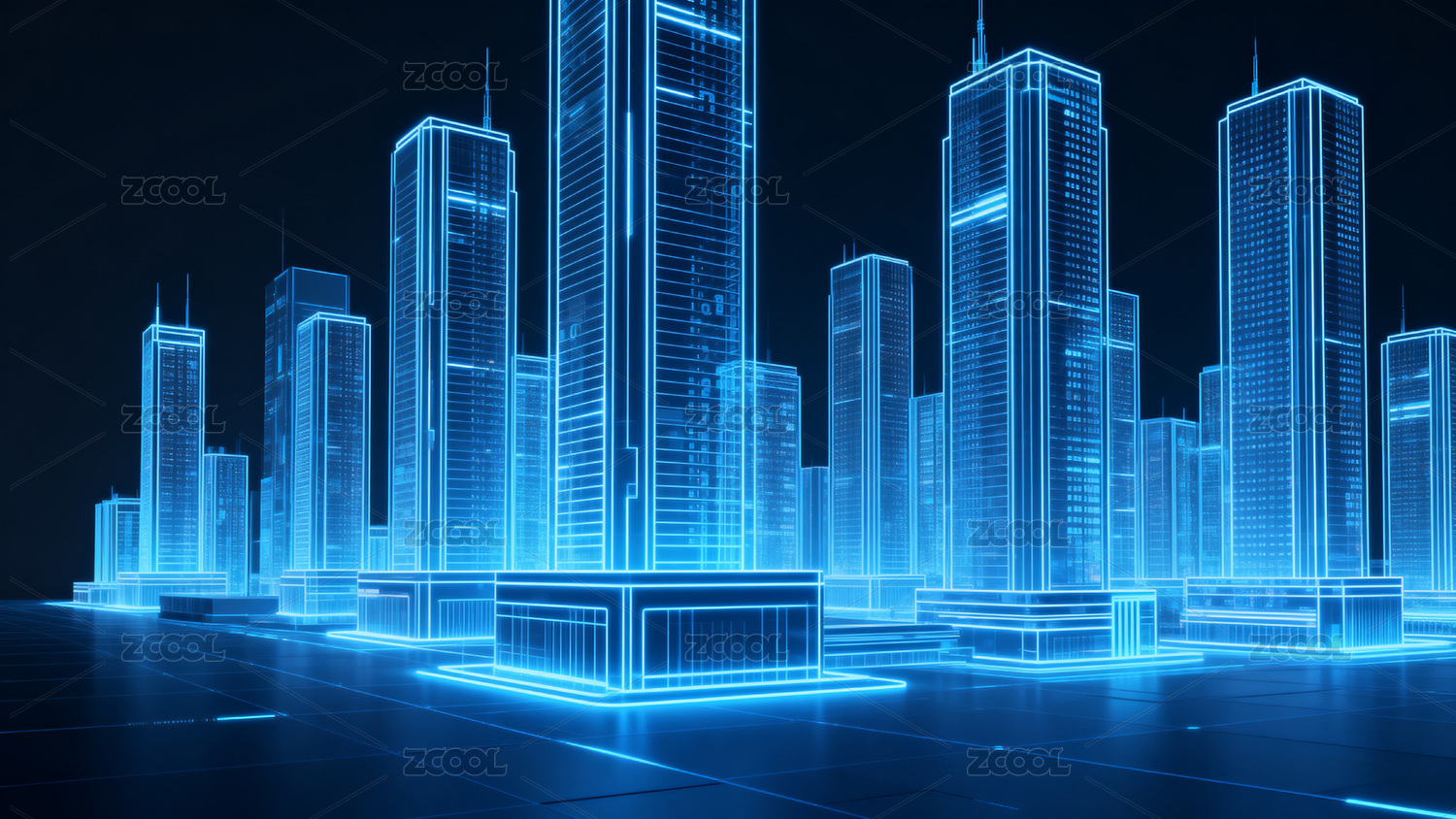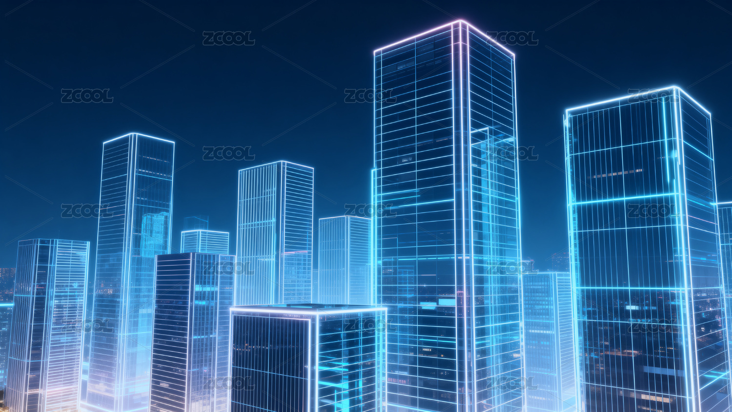 蓝色霓虹高楼城市天际线