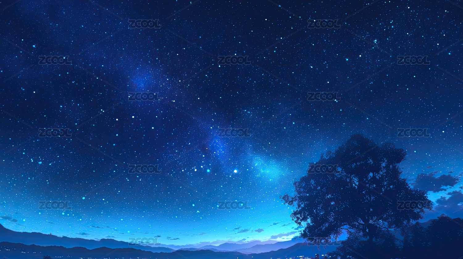 天空夜景夜色无人梦幻唯美创意设计艺术插画