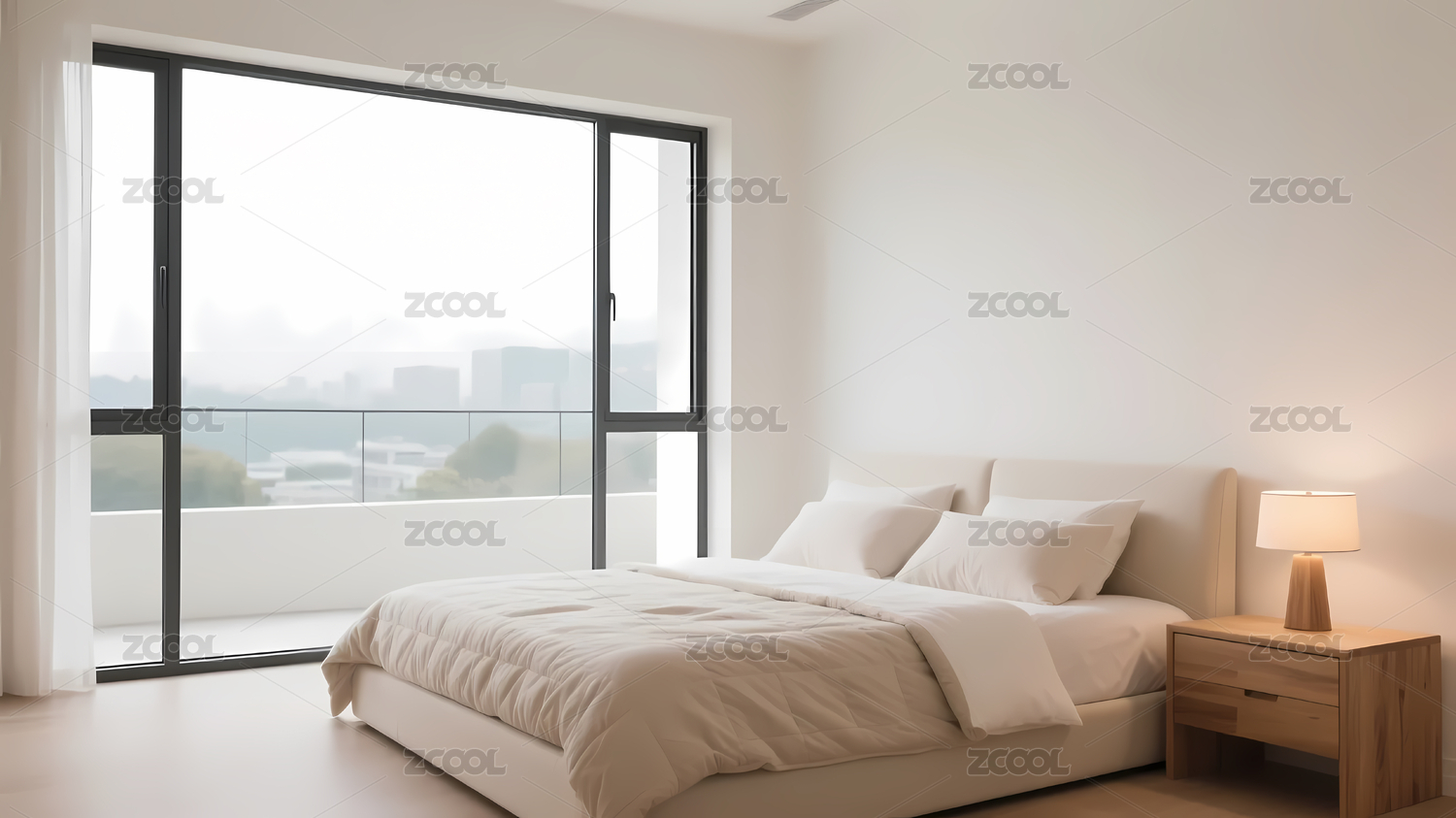 现代简约风格卧室配大面积玻璃窗