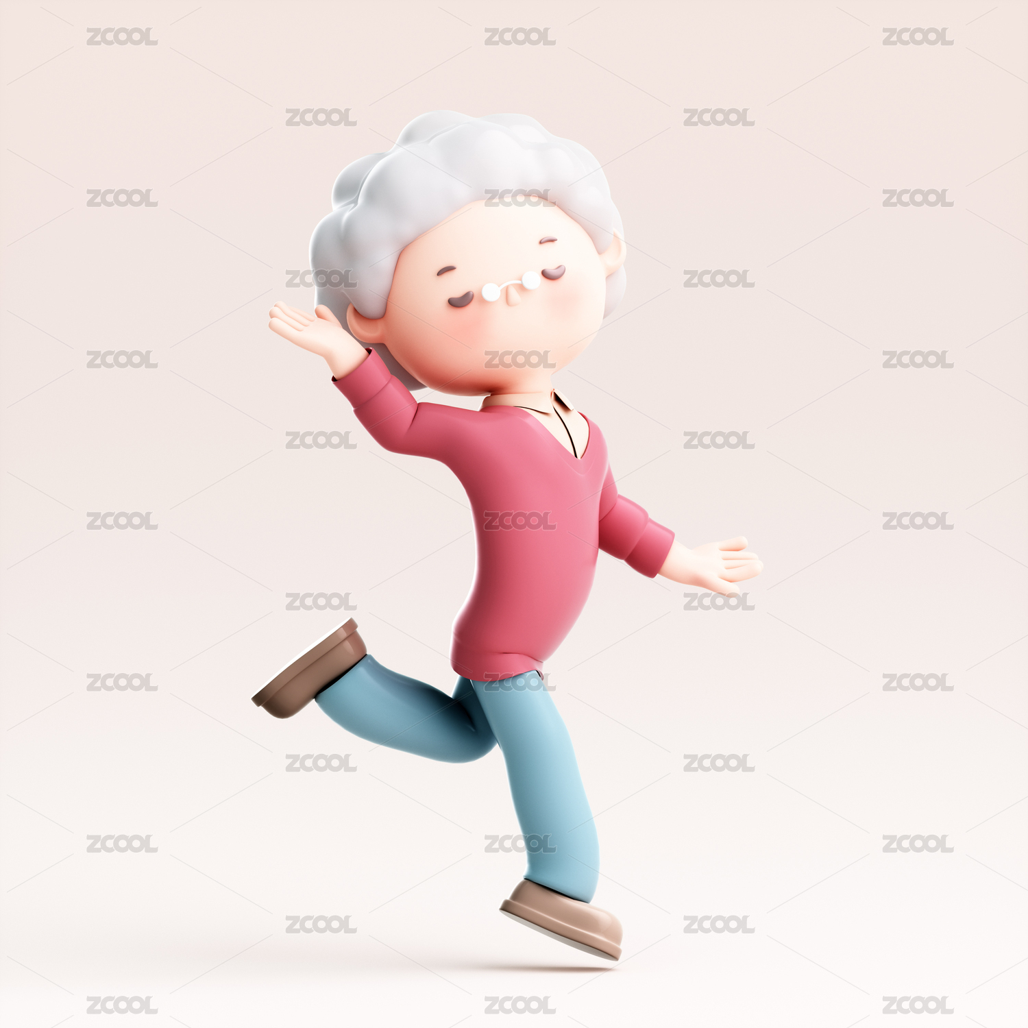老年女性,太极姿势,传统服饰,插画,动态姿势,武术,中国风,动画,人物,白色上衣
