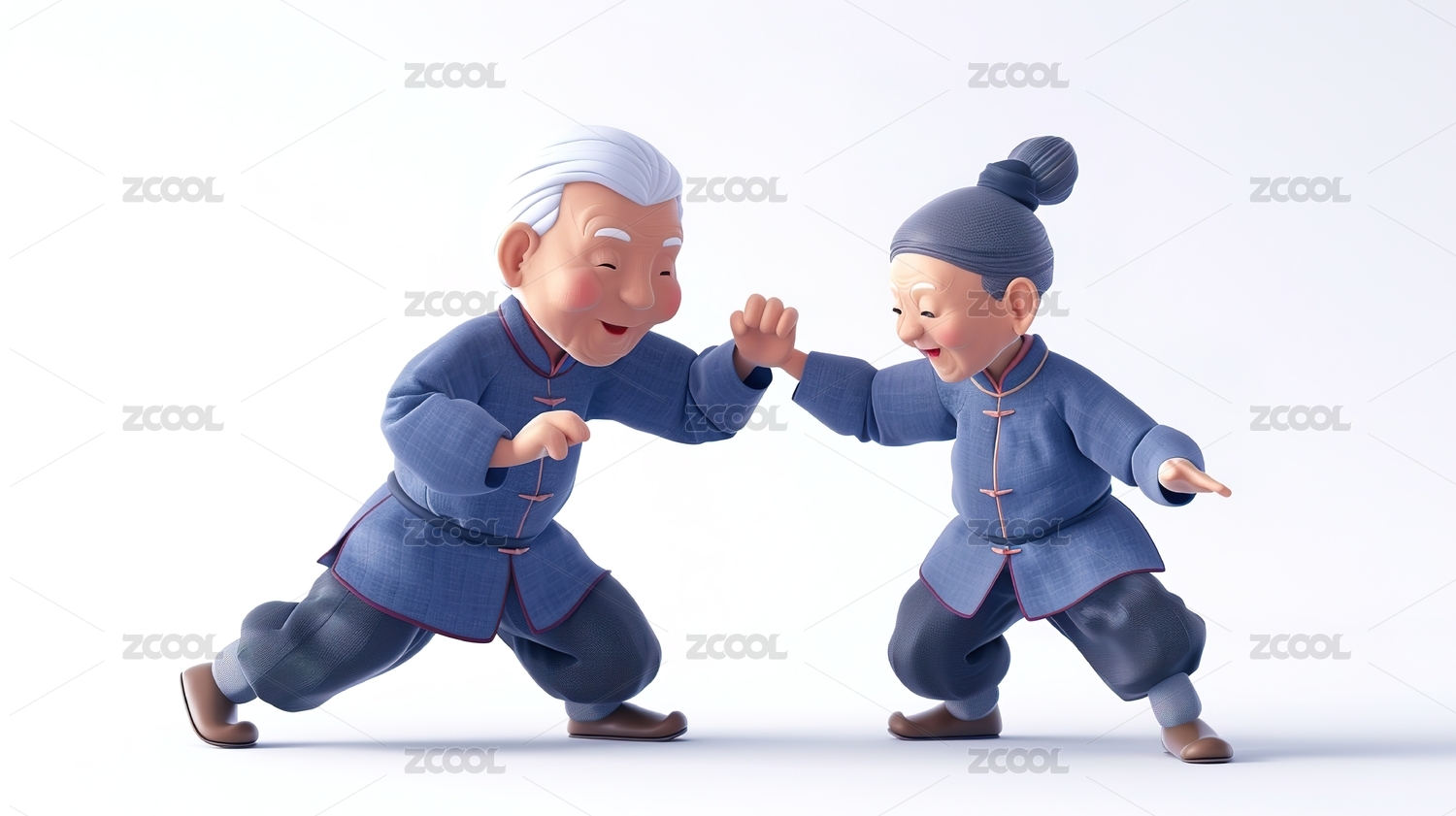 两位老年人在打太极 可爱风格重阳节老年人健康生活插画