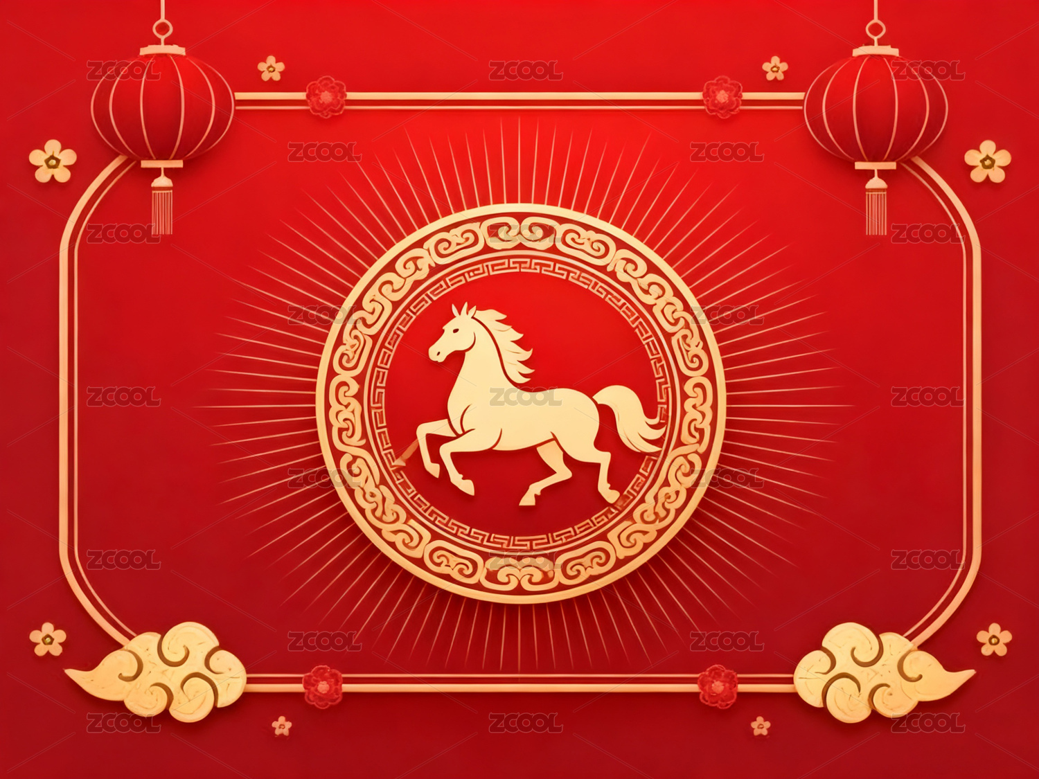 马,红色,背景,花,剪纸,装饰,传统,文化,图案,喜庆