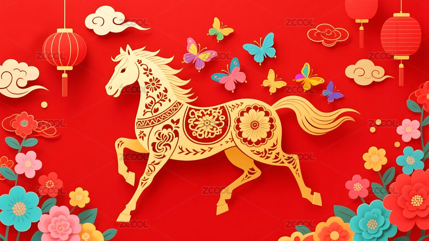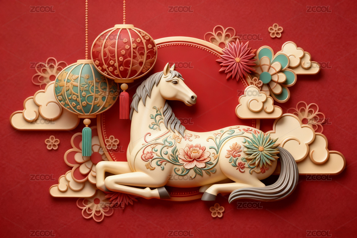 马,红色,背景,剪纸,灯笼,装饰,传统,文化,图案,喜庆