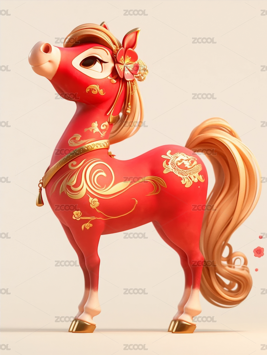 马,卡通,装饰,传统,可爱,文化,设计,花纹,元素,图案