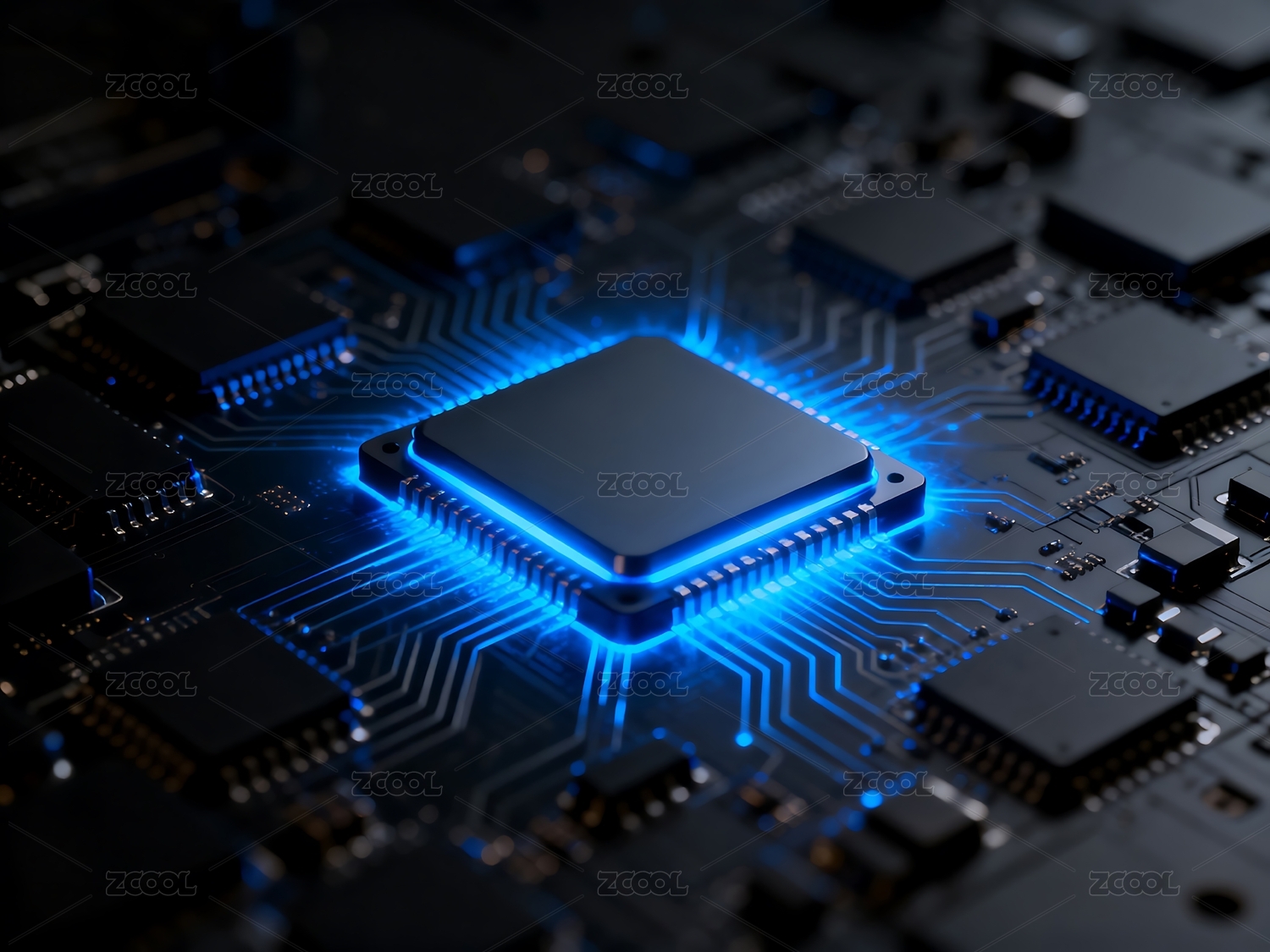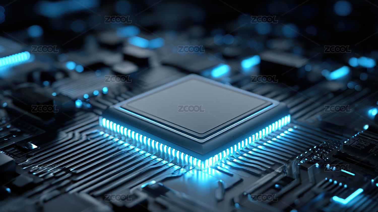 蓝色,光线,科技,科技感,电子,电路,芯片,线路,发光,集成