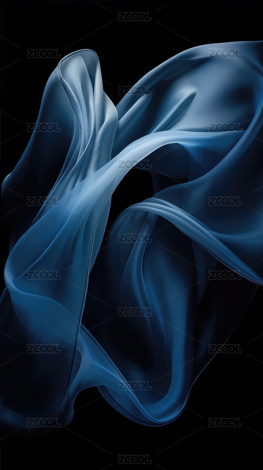 蓝色烟雾状抽象光影交织,梦幻流动感十足