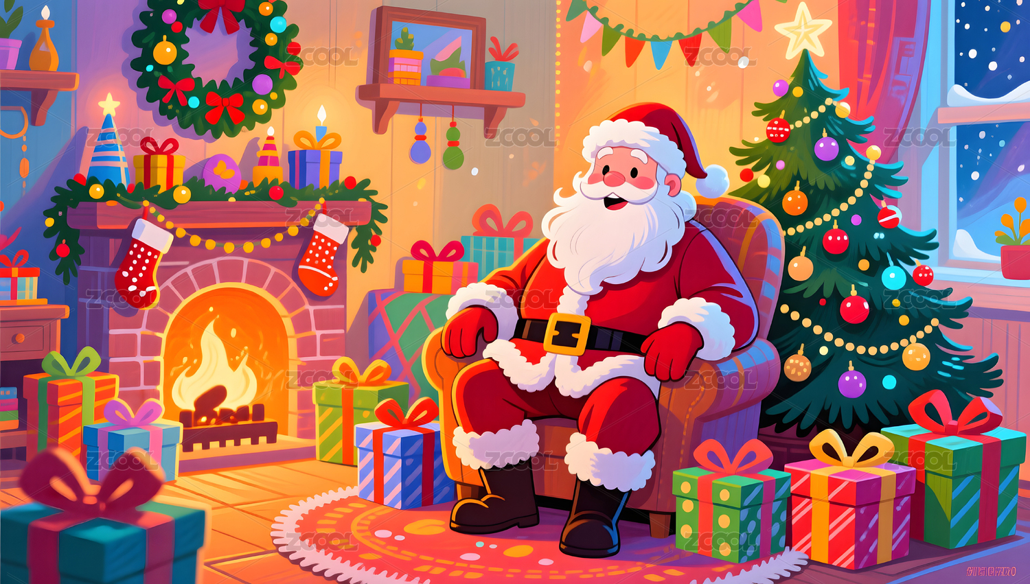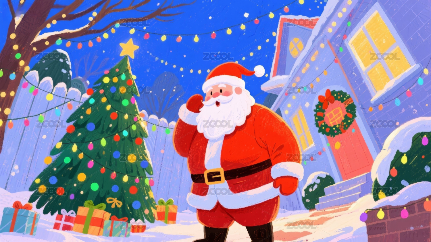 圣诞老人与装饰树的温馨场景