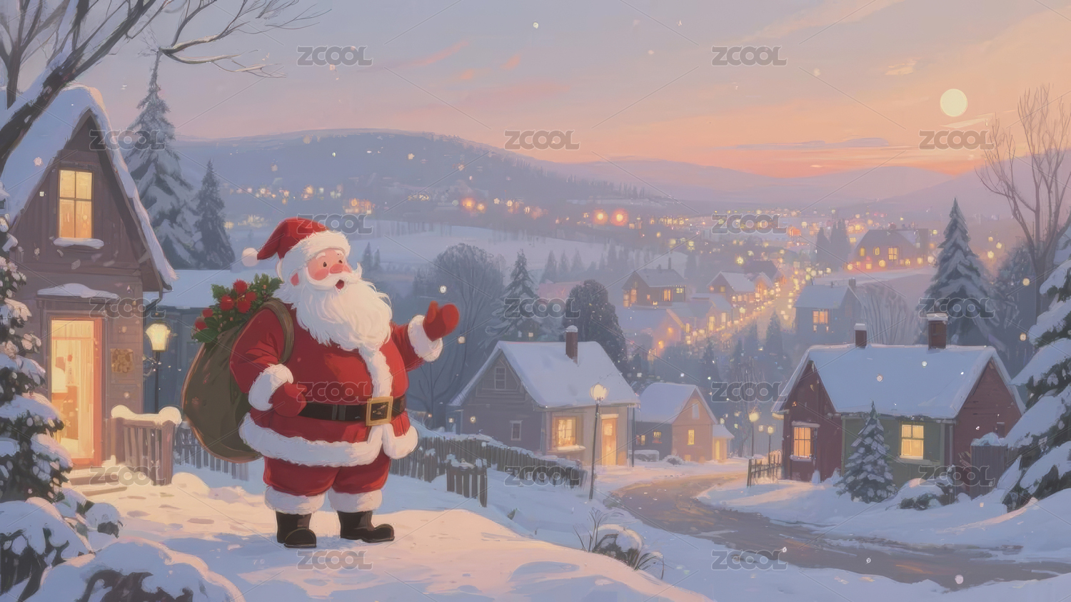 圣诞老人雪夜村庄