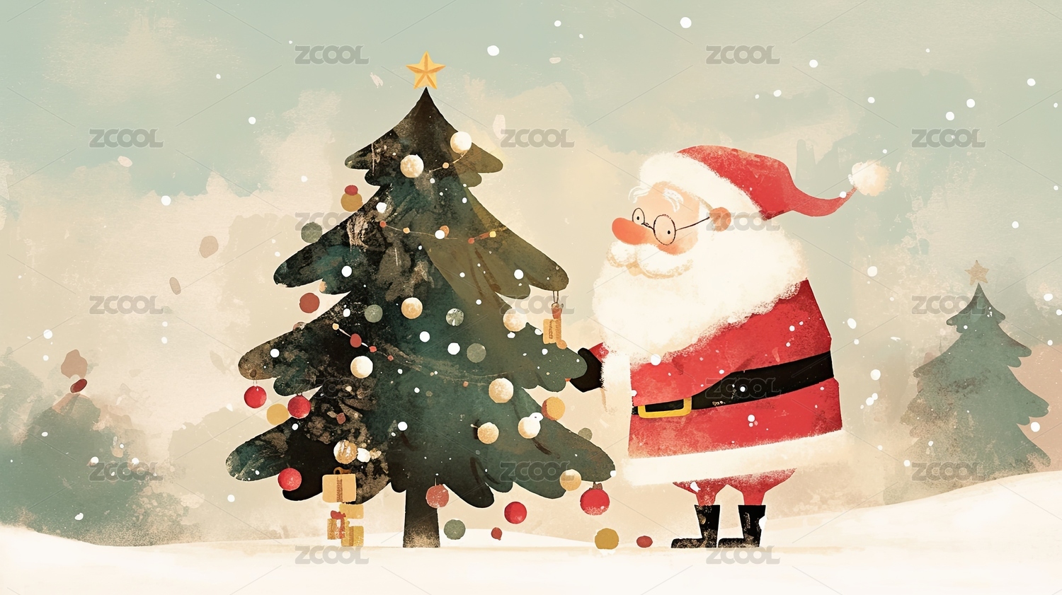 雪地上的圣诞老人治愈插画