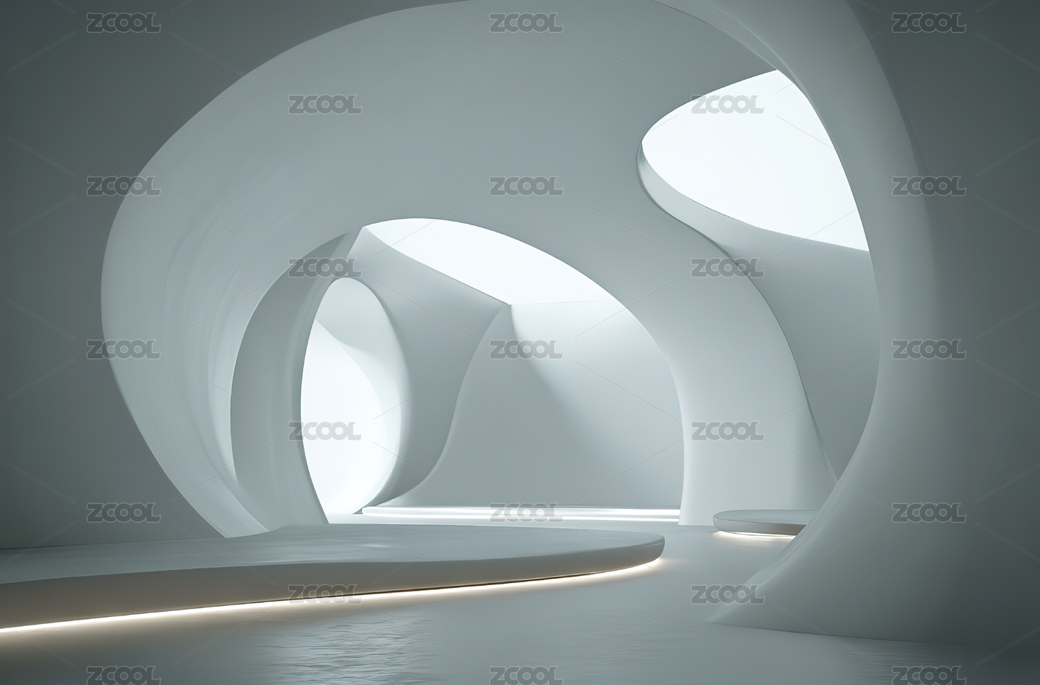 白色,现代,简洁,反射,弧形,设计,空间,结构,室内,对称