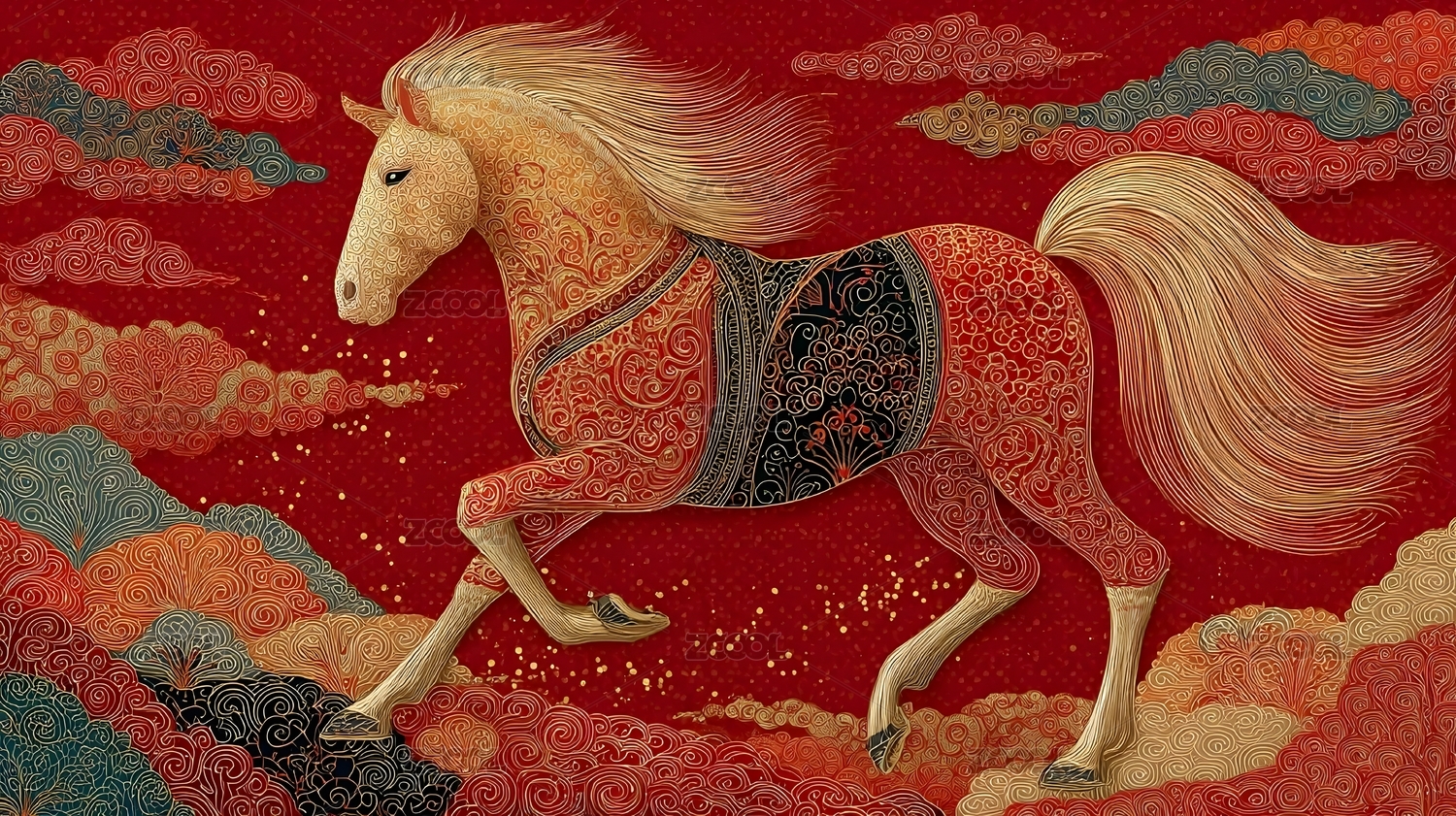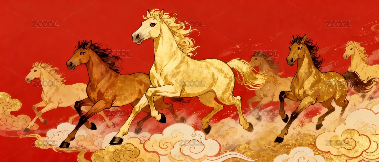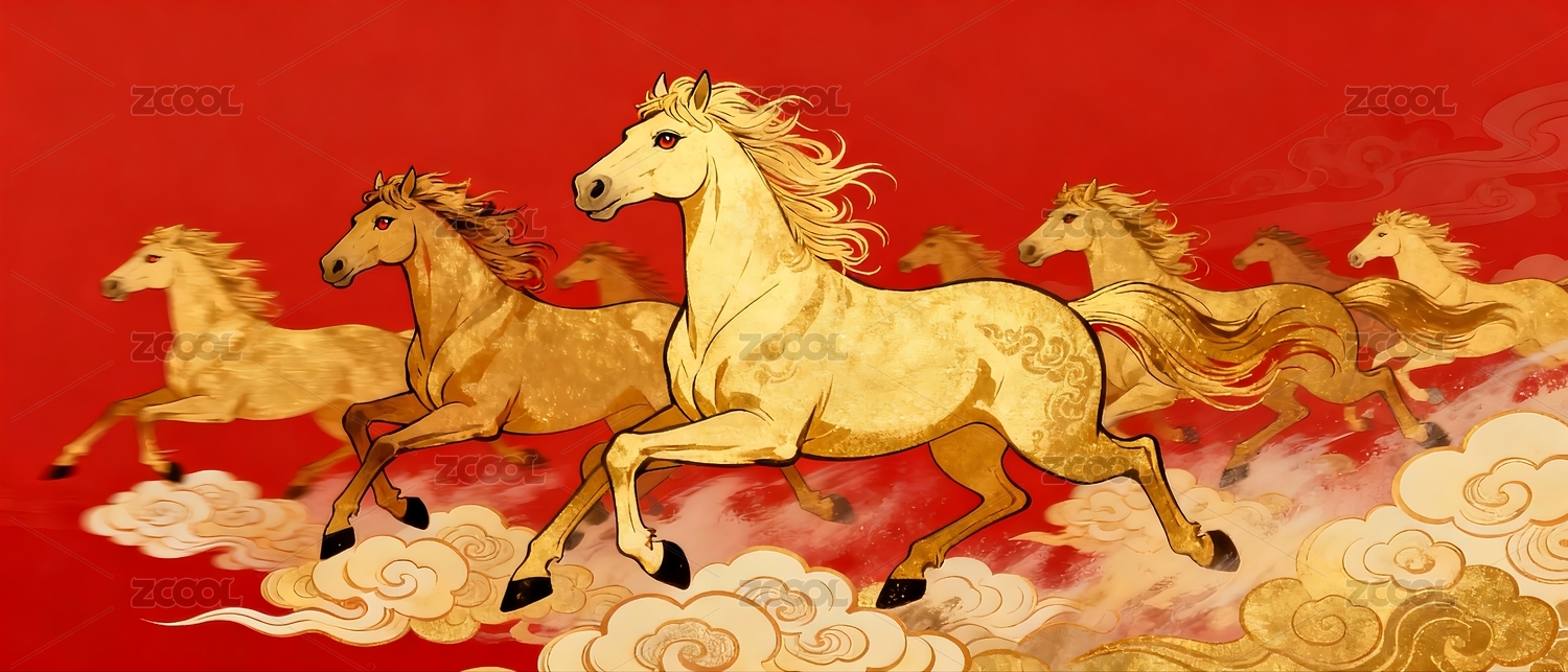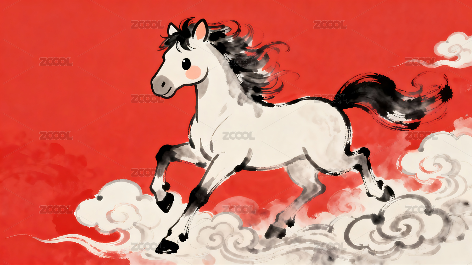 粉色,云海,云雾,背景,商务,古建筑,奔跑,白色,骏马,蓝色