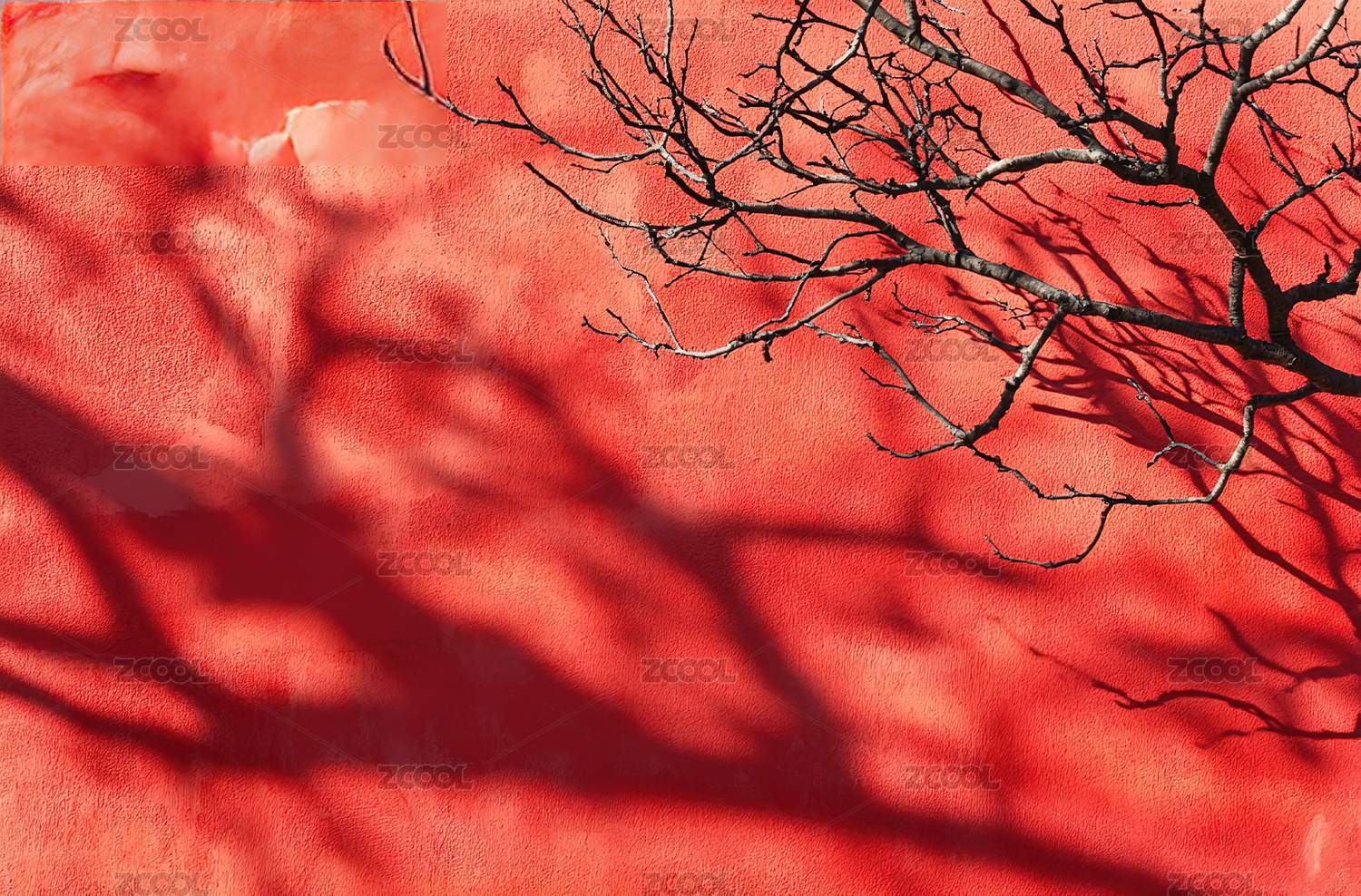 红墙上树影斑驳的光影