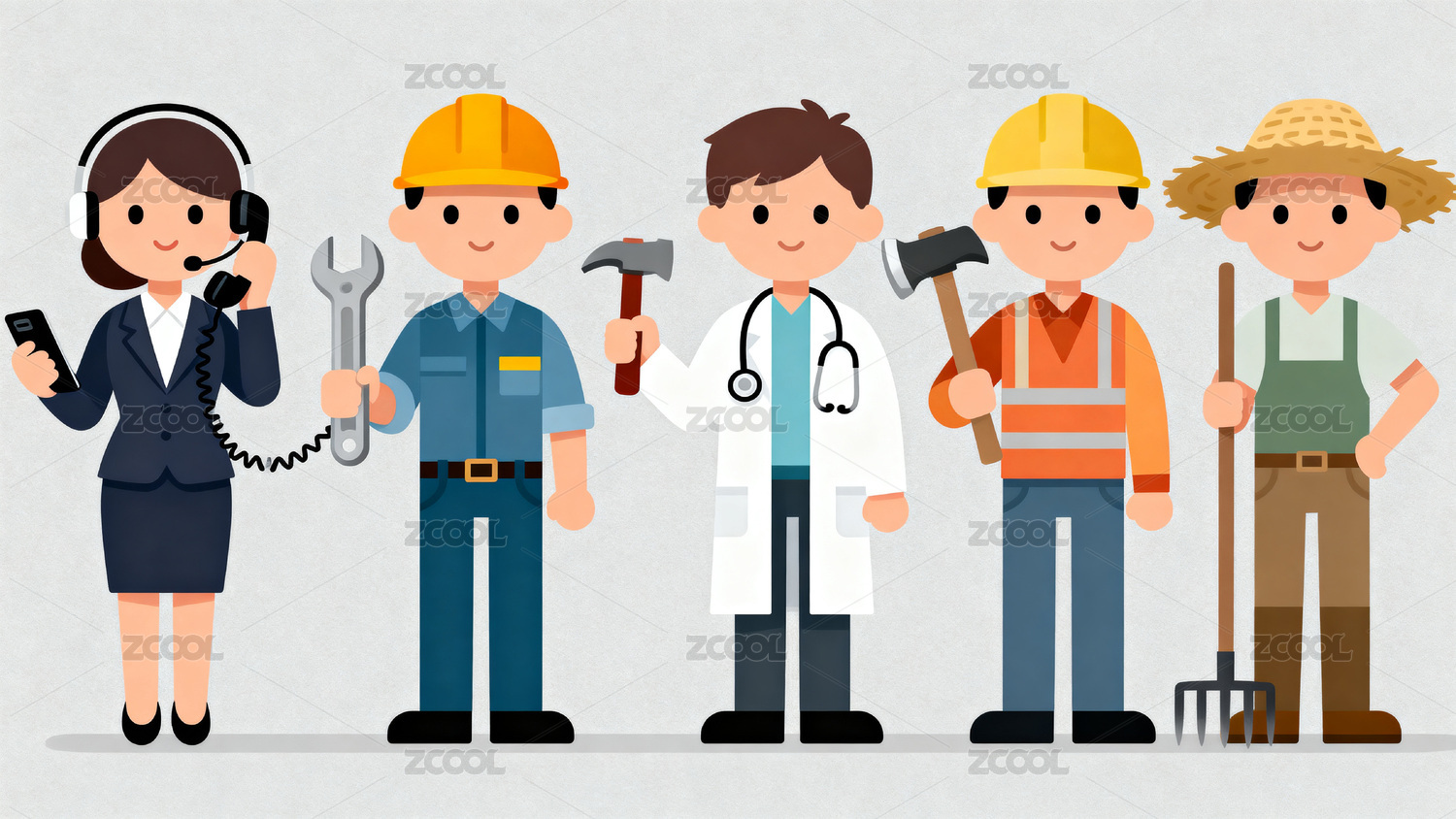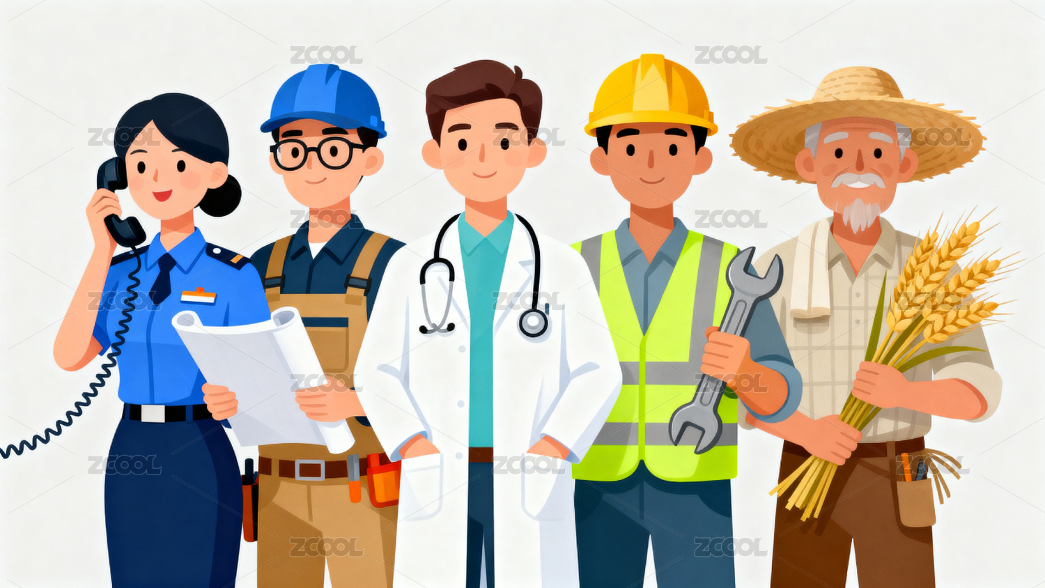 男性,工人,安全帽,工作服,职业,女性,医生,农民,电话,图纸