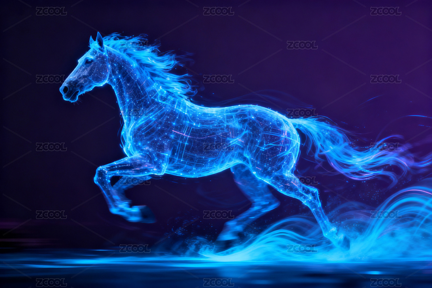 创意唯美金属透明彩色3D卡通立体全息骏马