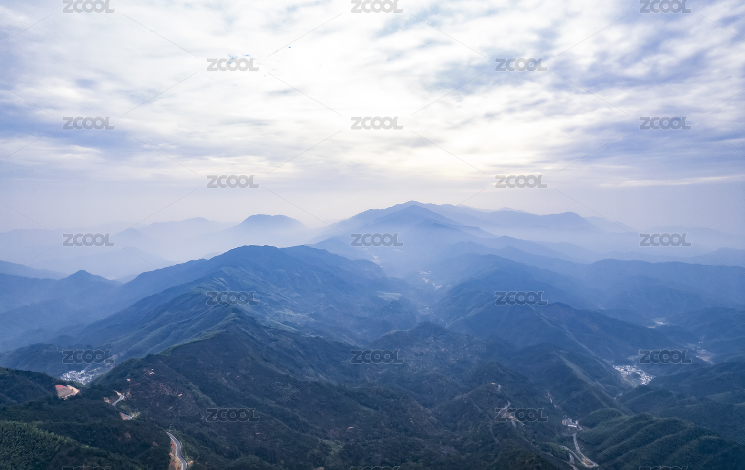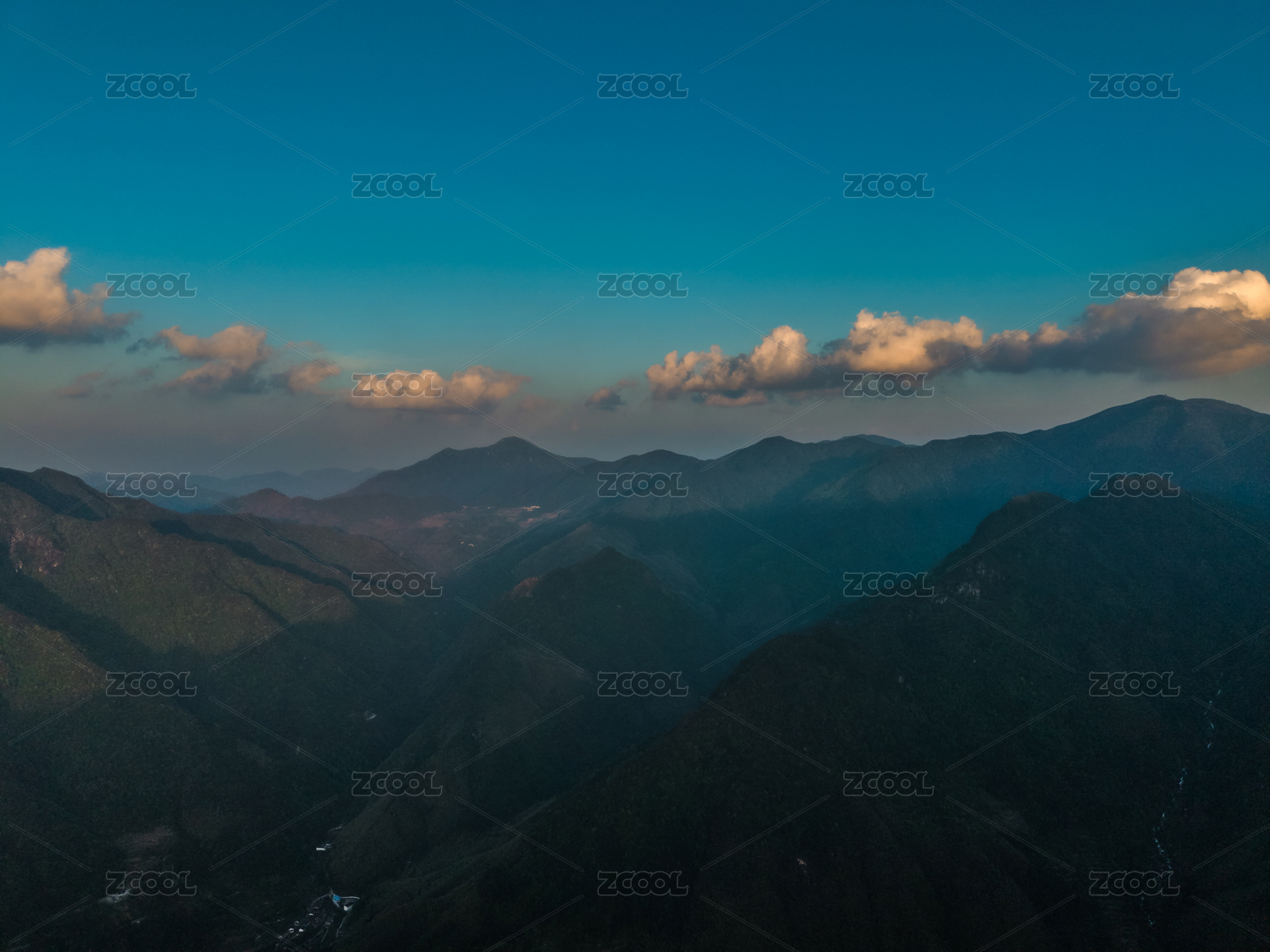 高视角下傍晚山区起伏的山峦