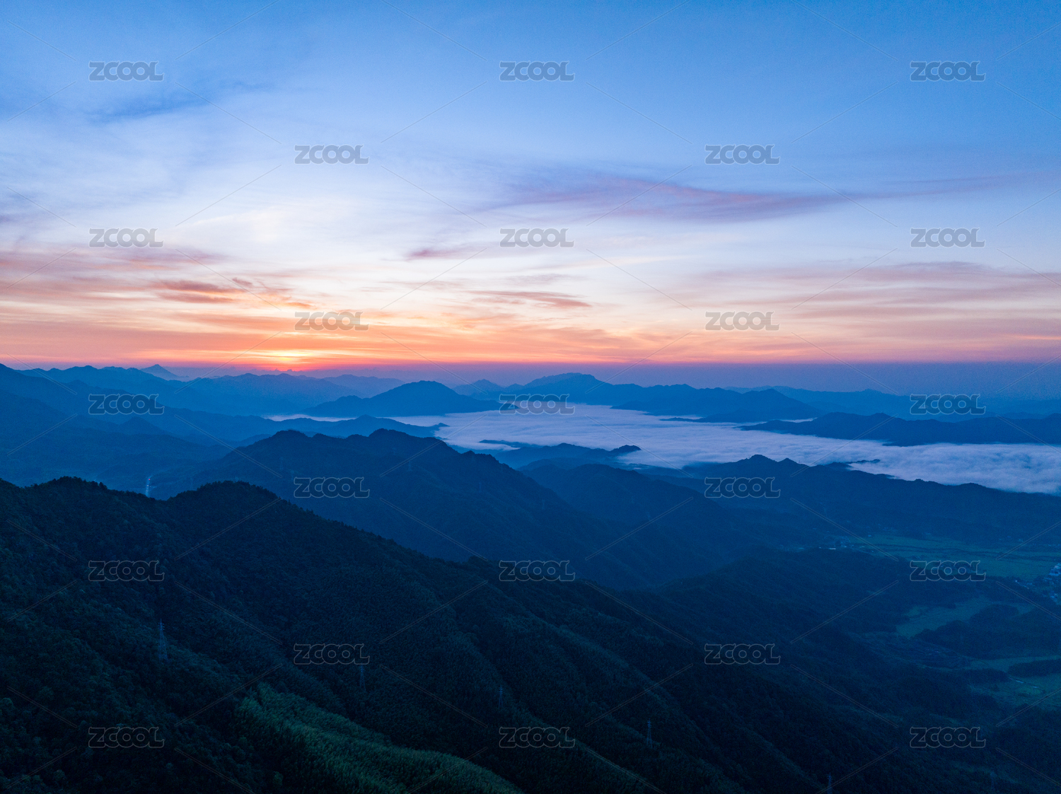 杭州临安大明山牵牛岗群山日出朝霞自然风景