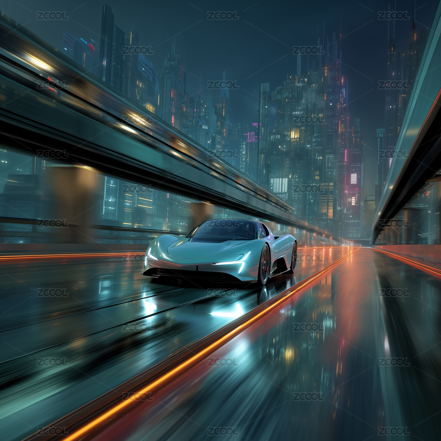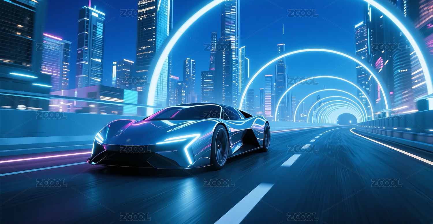 超跑,电动,高架,公路,道路,灯光,光芒,城市,天际线,背景