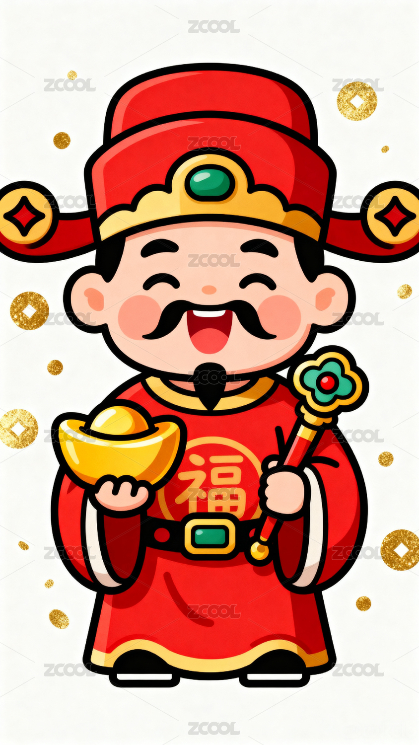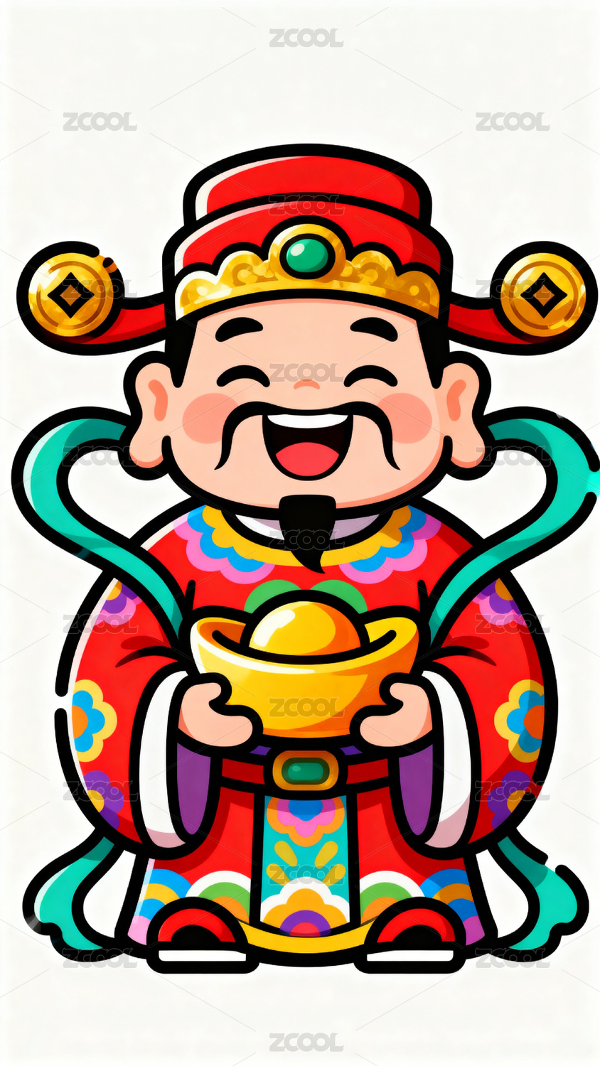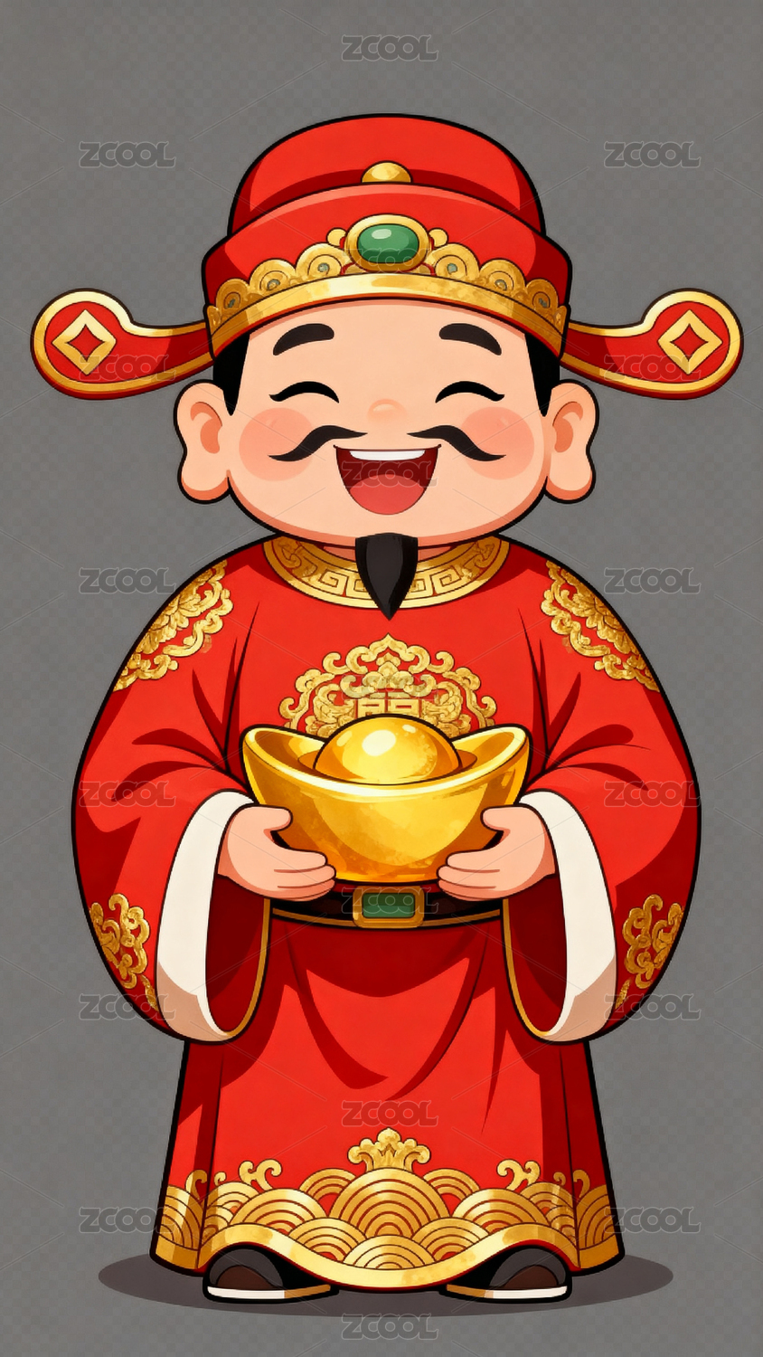 财神,笑脸,中国风,财神爷,金元宝,插画,卡通