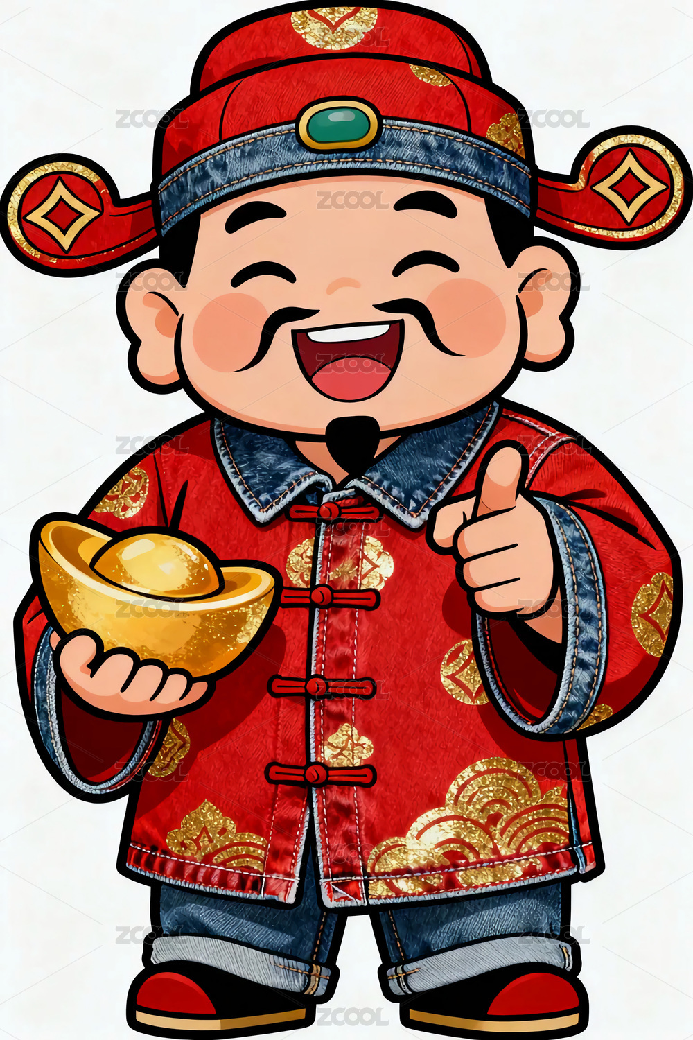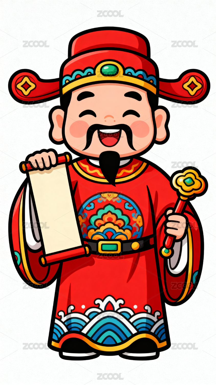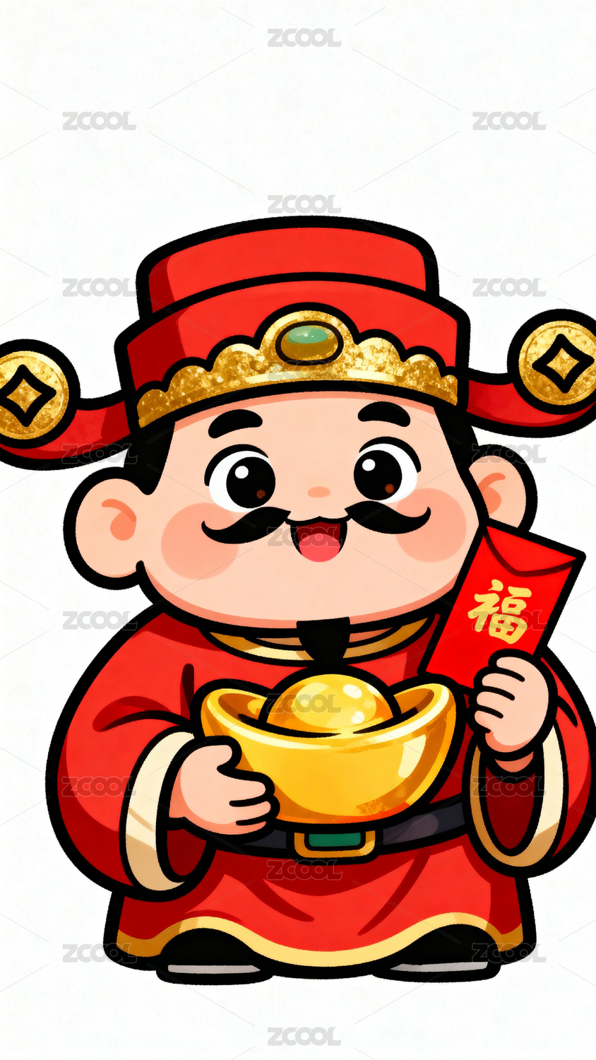 财神,笑脸,中国风,财神爷,金元宝,插画,卡通