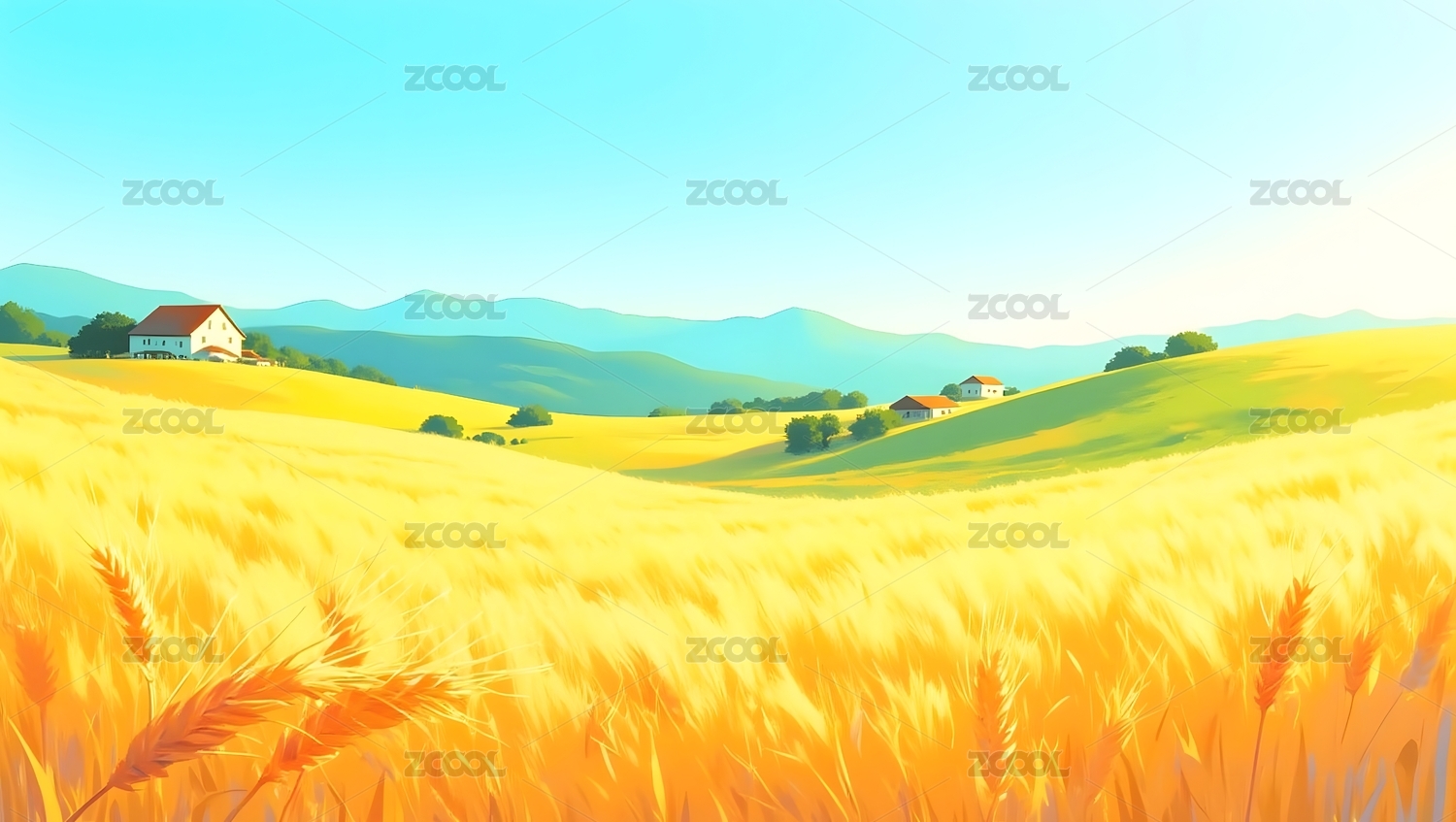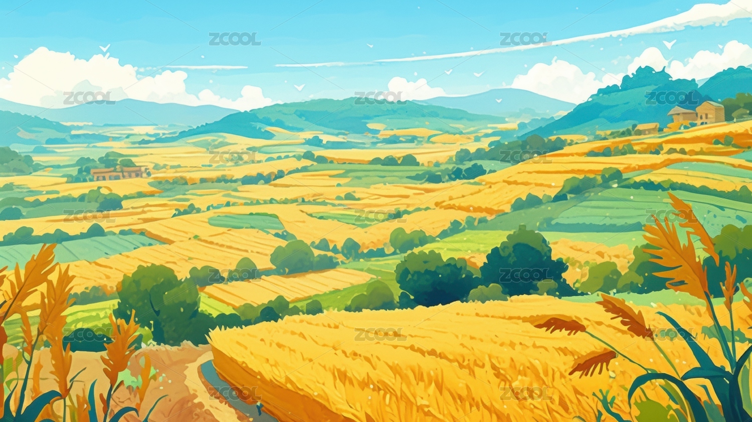 秋天秋季立秋秋分自然户外风景卡通漫画插画