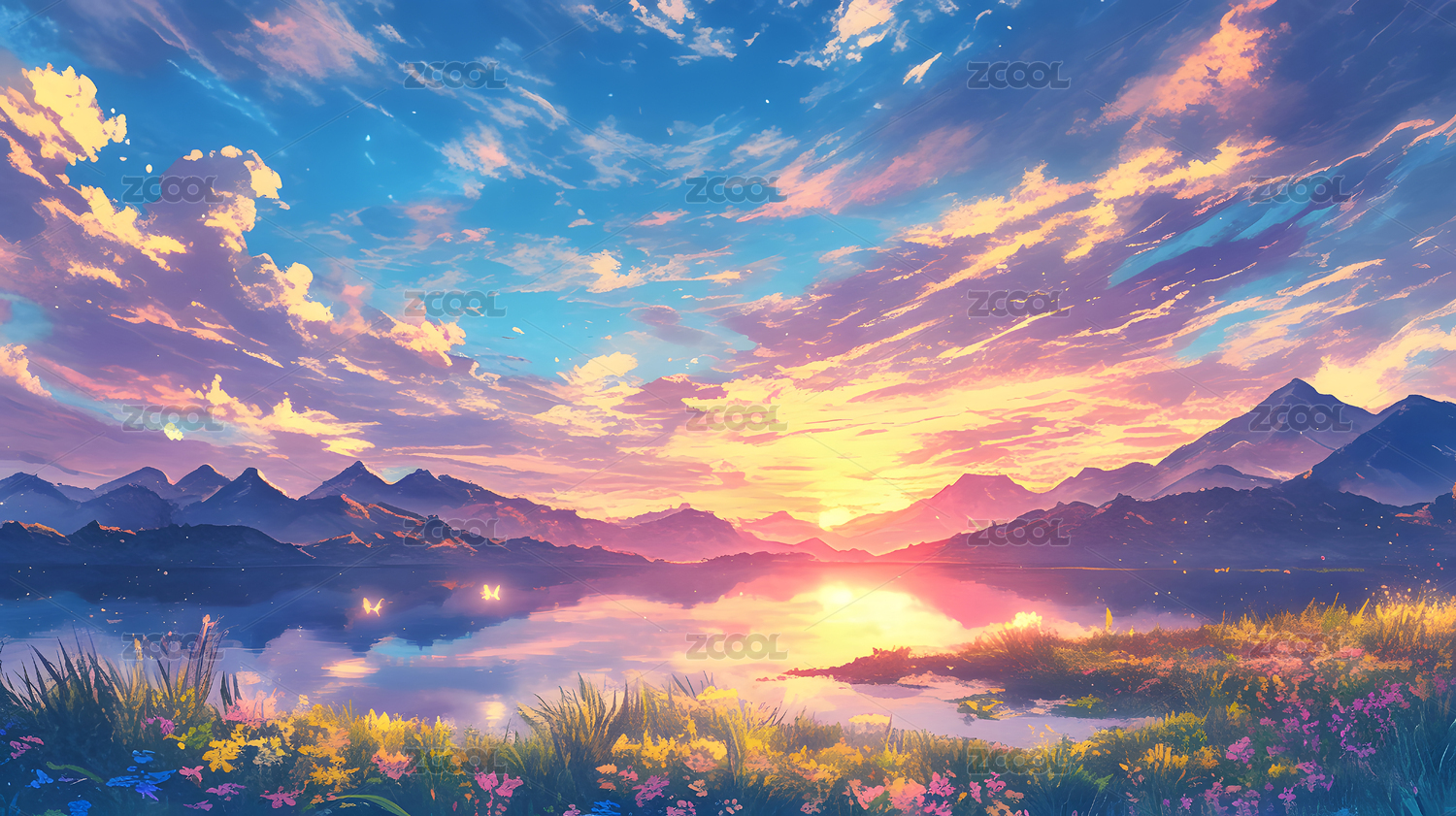 色彩,蓝色,天空,梦幻,风景,自然,山峰,树木,光影,紫色