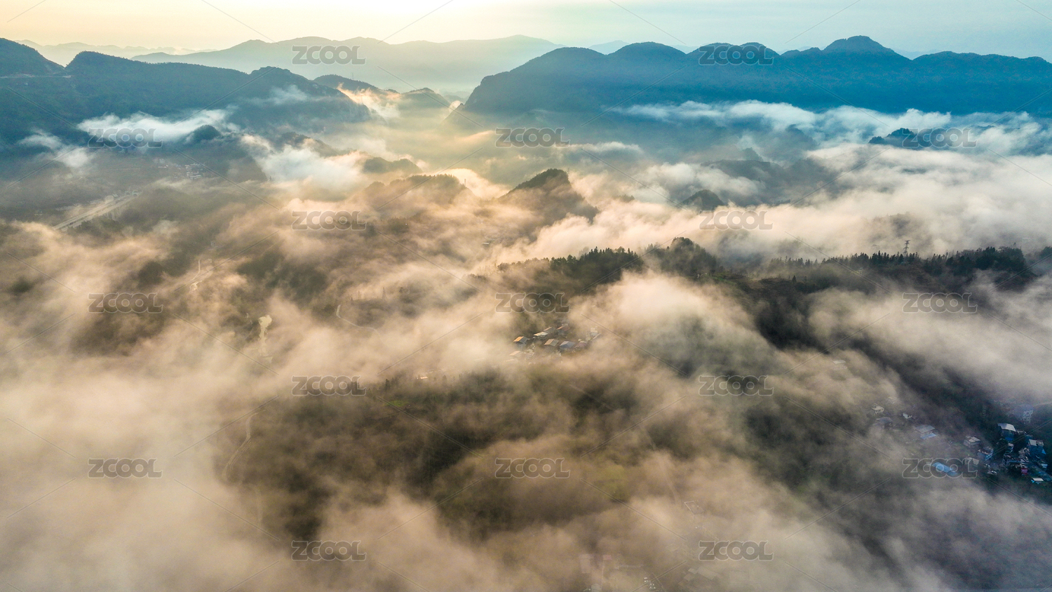 亚洲,中国,重庆,酉阳,乡村,平流雾,村落,深秋,自然景观,日出