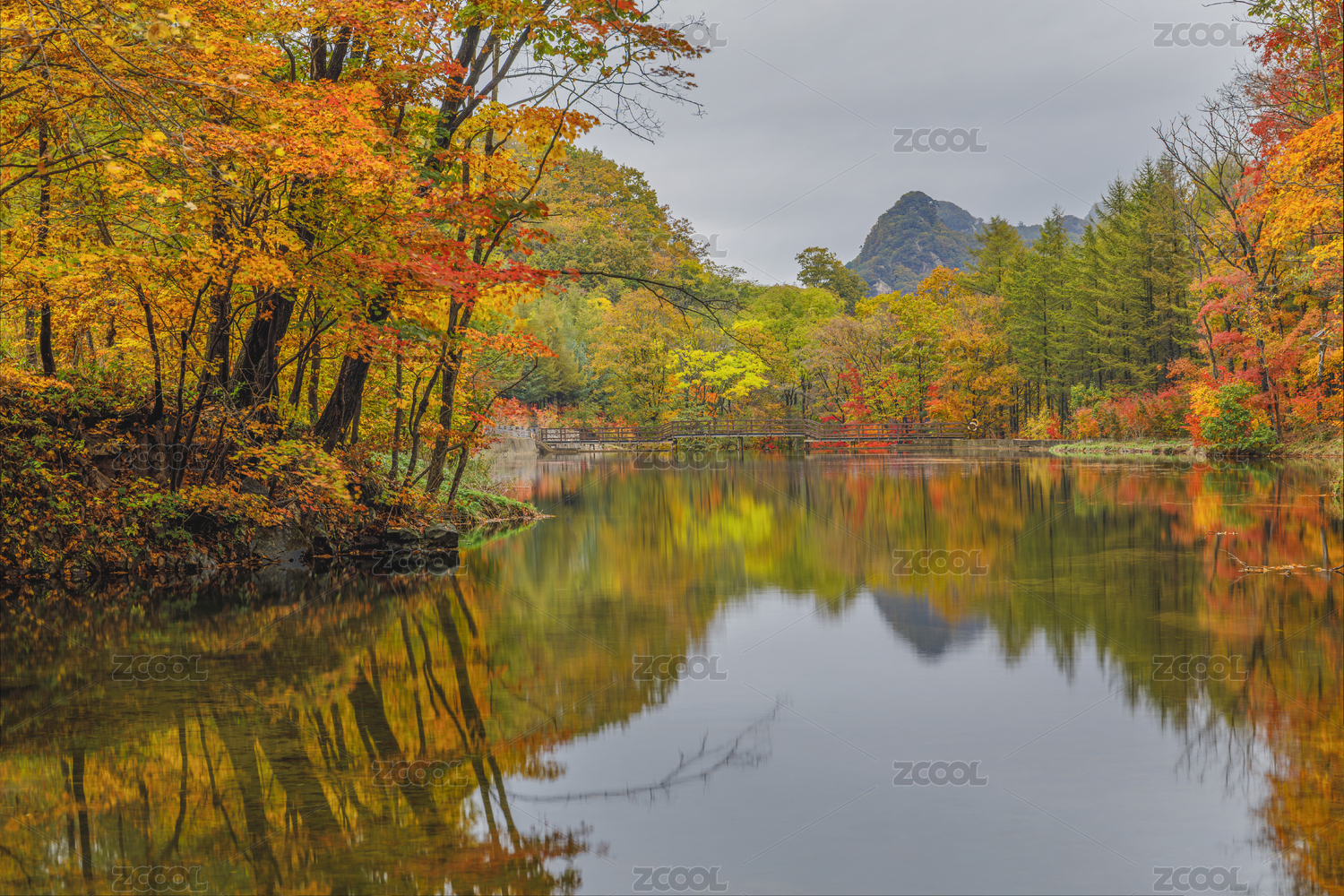 辽宁本溪大石湖风景名胜区秋天红枫景色