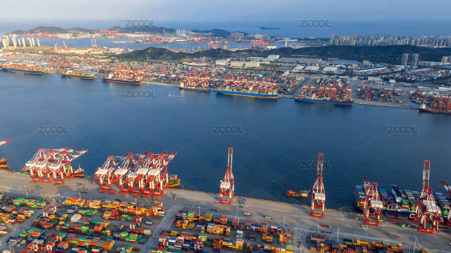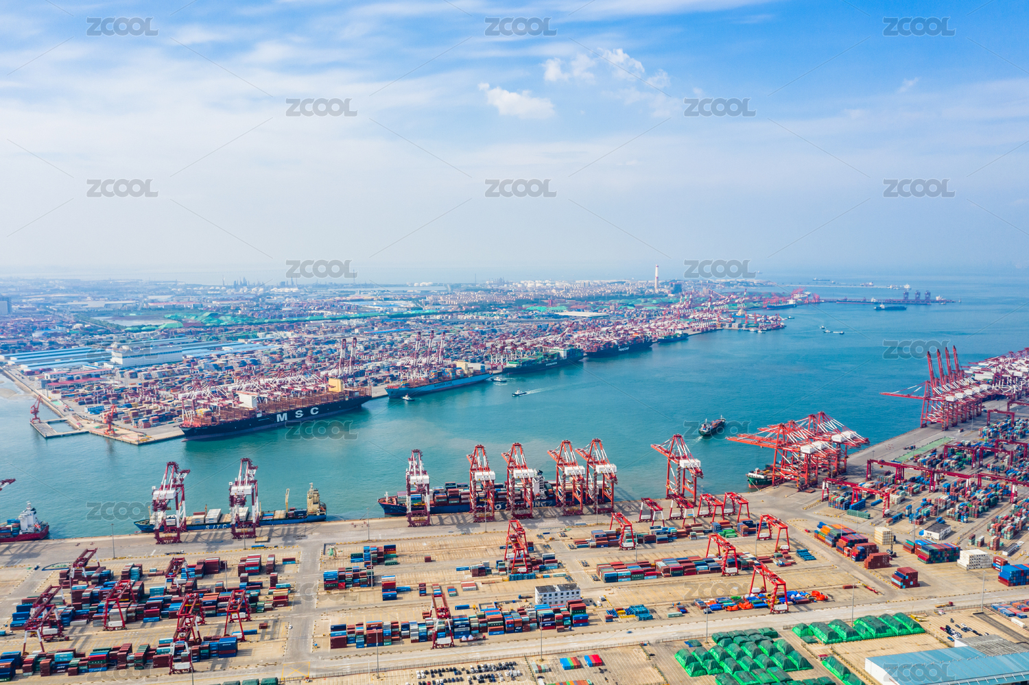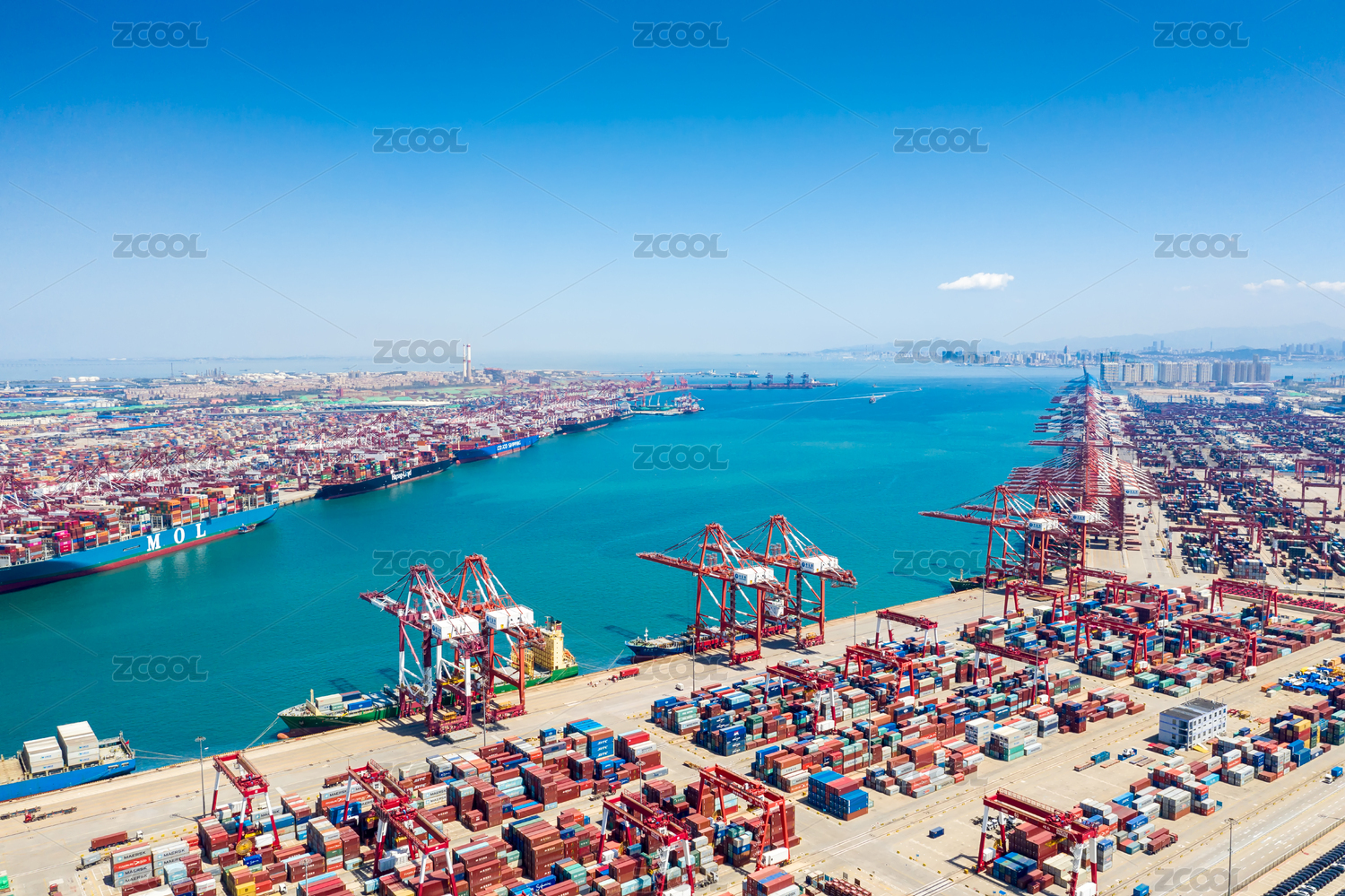 青岛,航拍,无人机视角,集装箱,码头,场站,堆叠,龙门吊,起重机,多彩