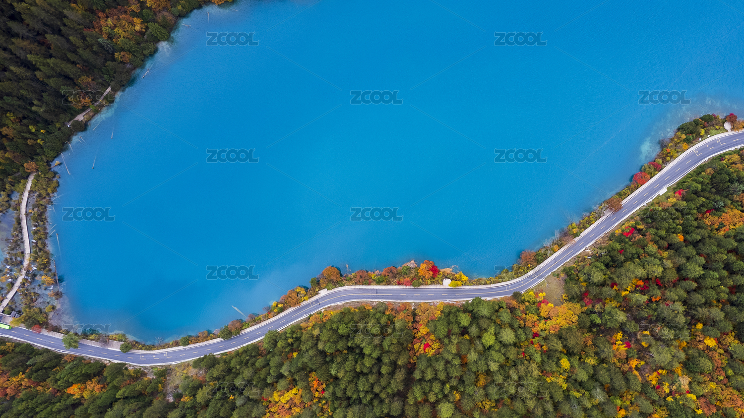四川阿坝州九寨沟秋色网红瑶池高空航拍