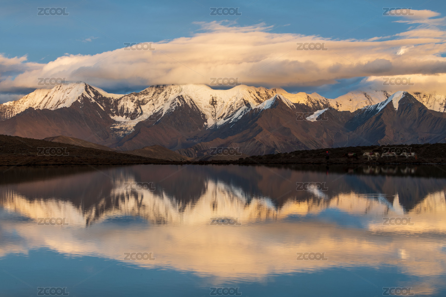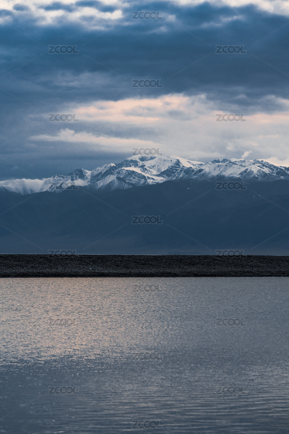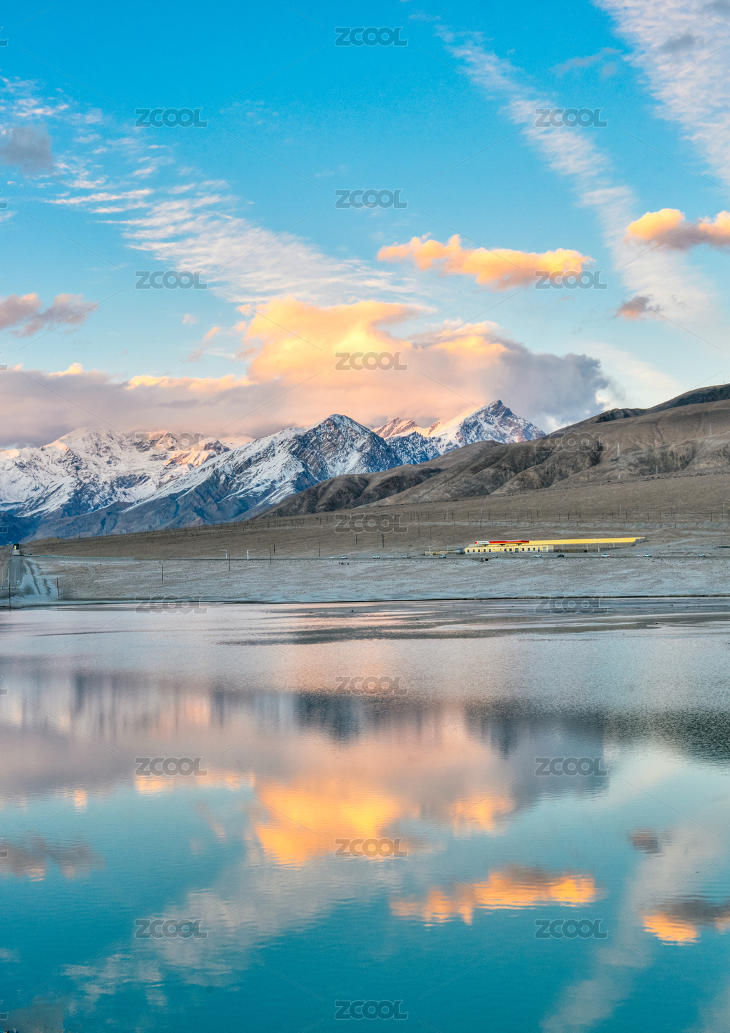中国新疆帕米尔高原白沙湖美丽日落晚霞风景