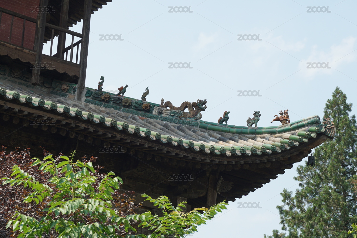 山西省朔州崇福寺观音殿古建筑屋檐屋脊兽