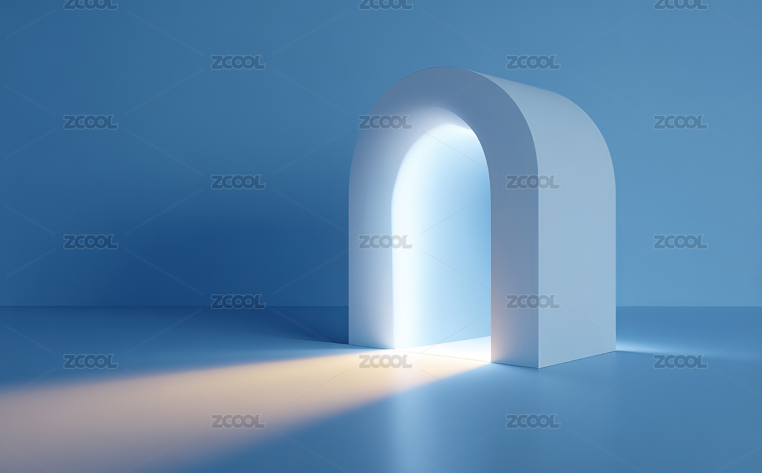 抽象,蓝色,渐变,光影,三维,场景,走廊,背景,洞口,拱门
