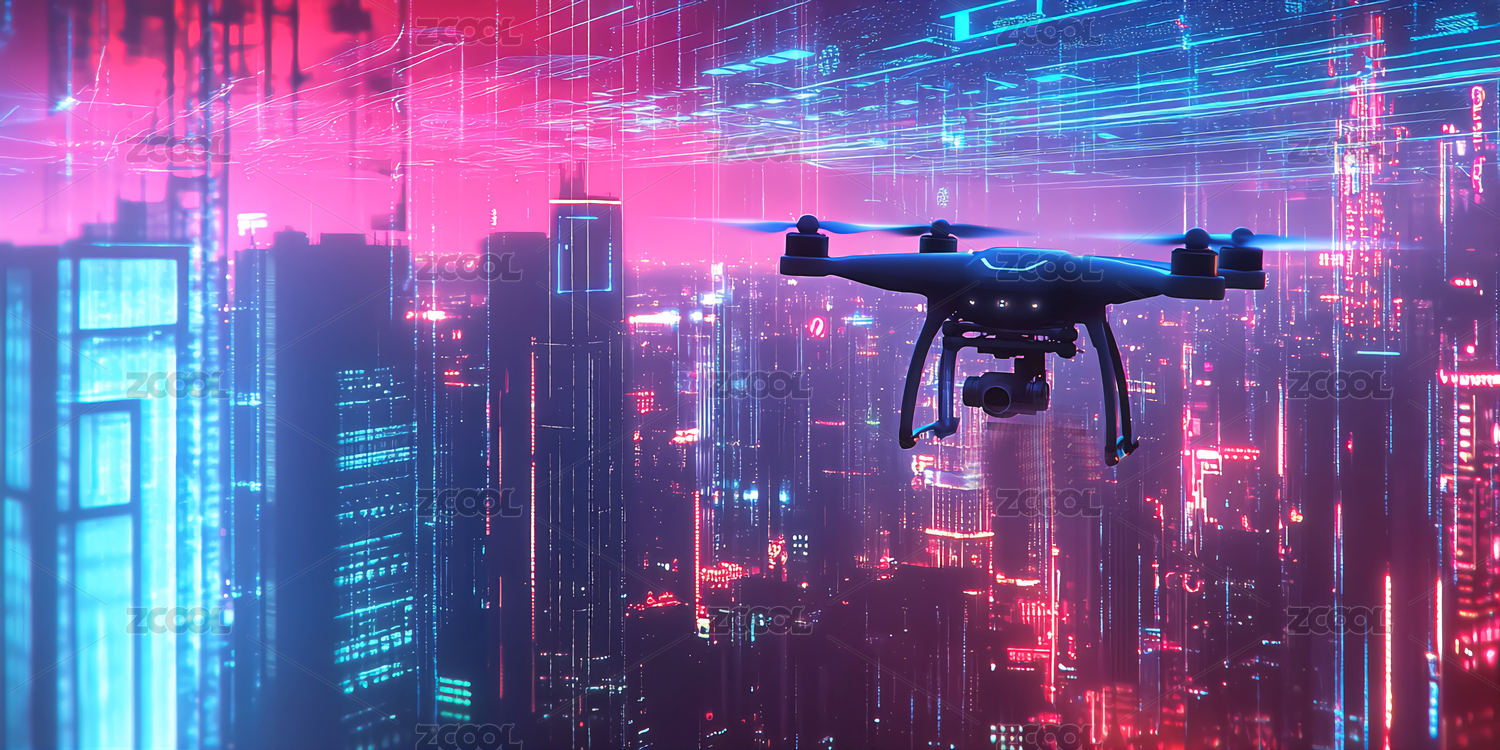 灯火阑珊,背景,商务,城市,科技,天际线,摩天大厦,无人机,拍摄,三维
