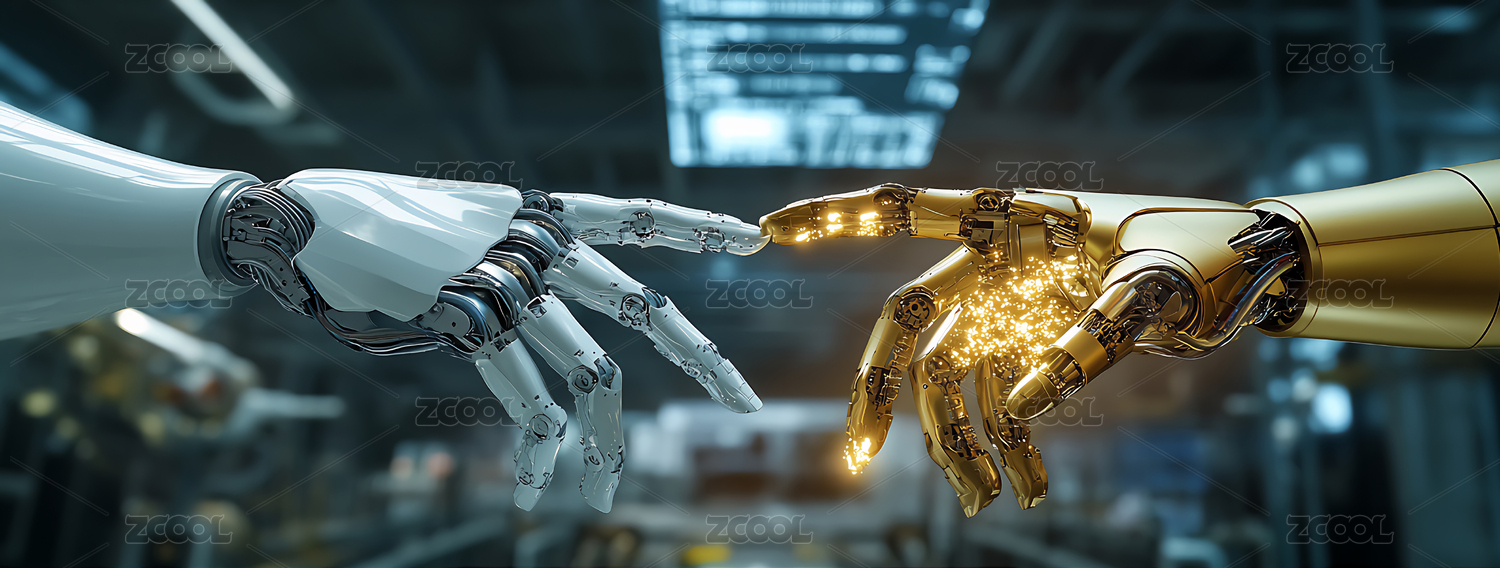 银金机械手臂蓝黑背景