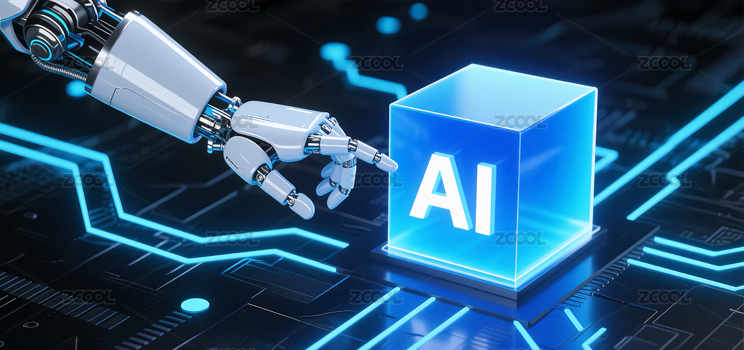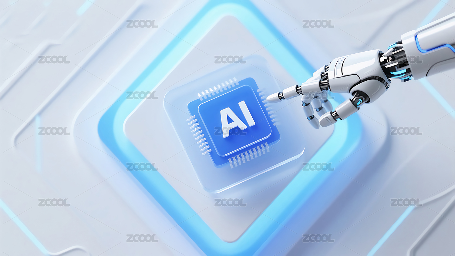 人工智能,机器人,机械臂,触碰,AI芯片,科技,蓝色,图标,商务,主视觉