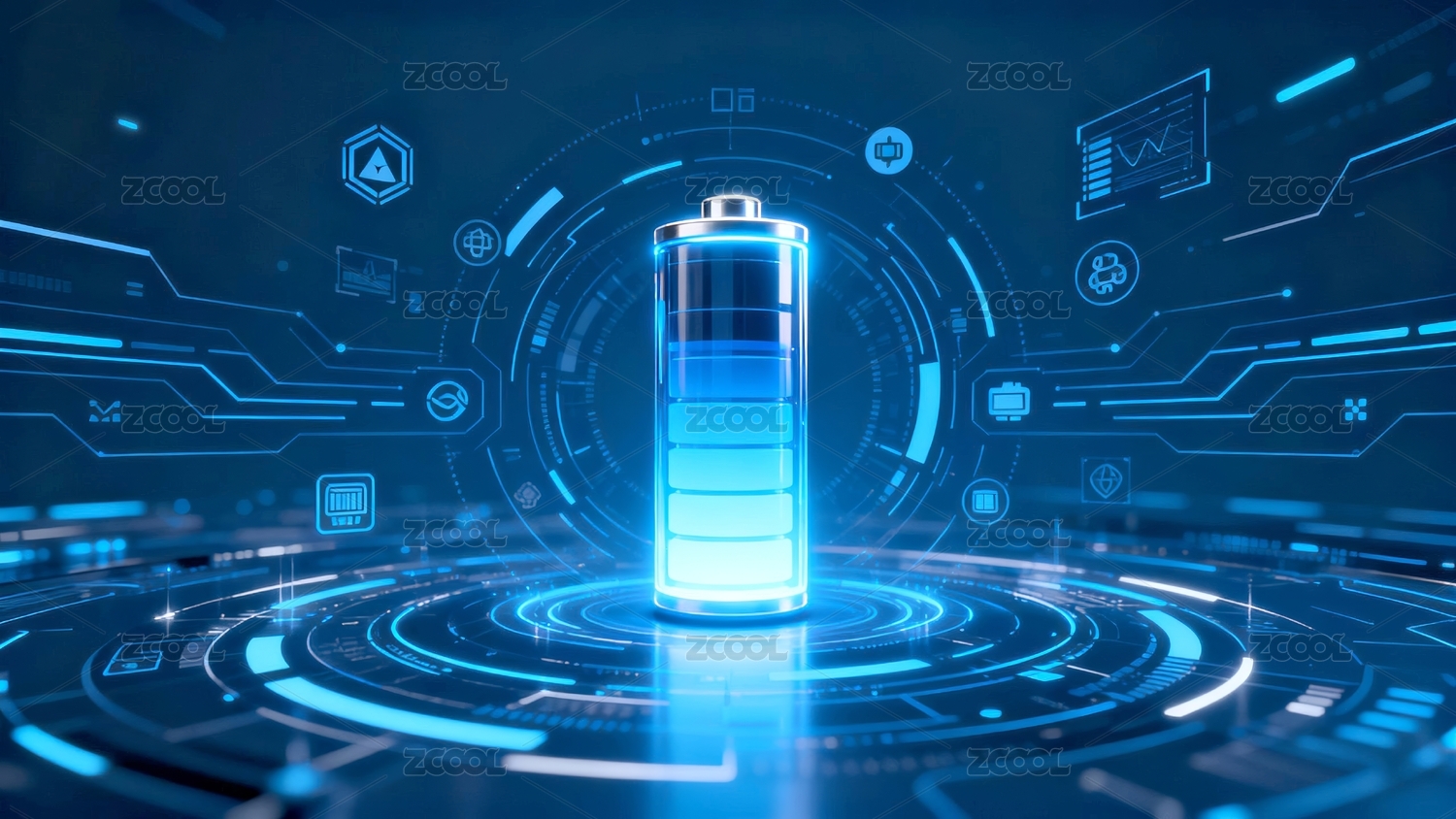 科技,新能源,环保,蓝色,光影,光环,电池,研发,插图,电路板