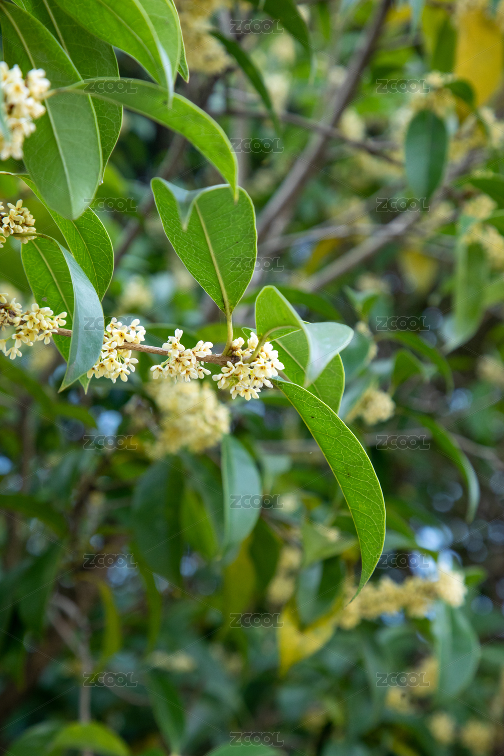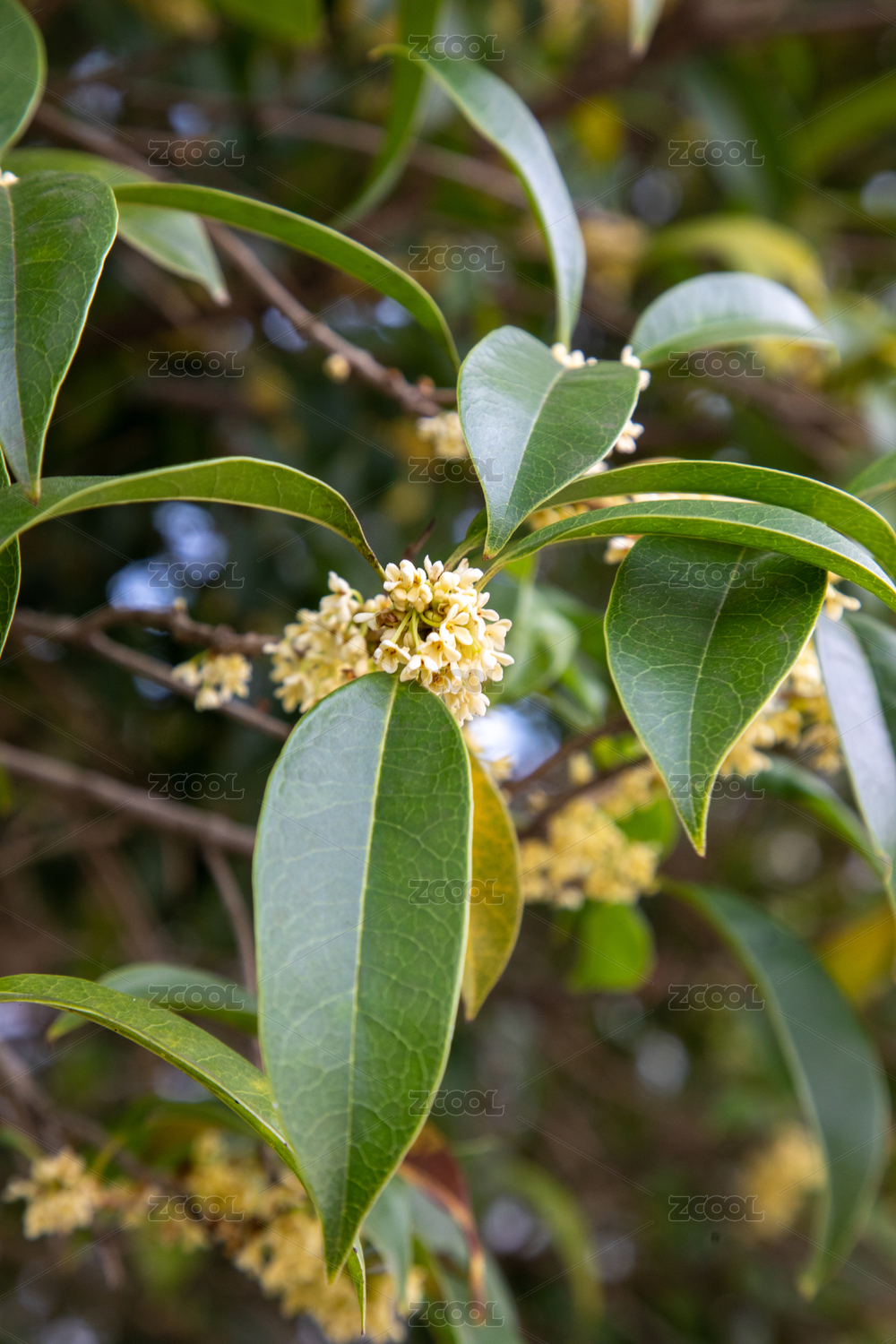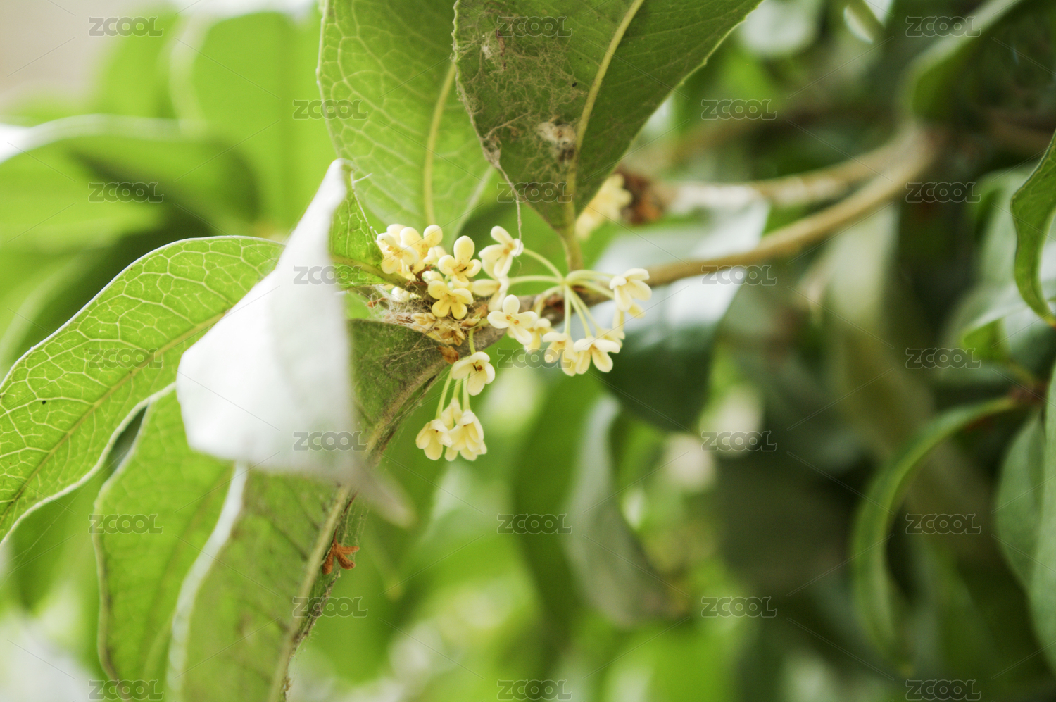桂花,花朵,花卉,秋季,微距,绿叶,枝条