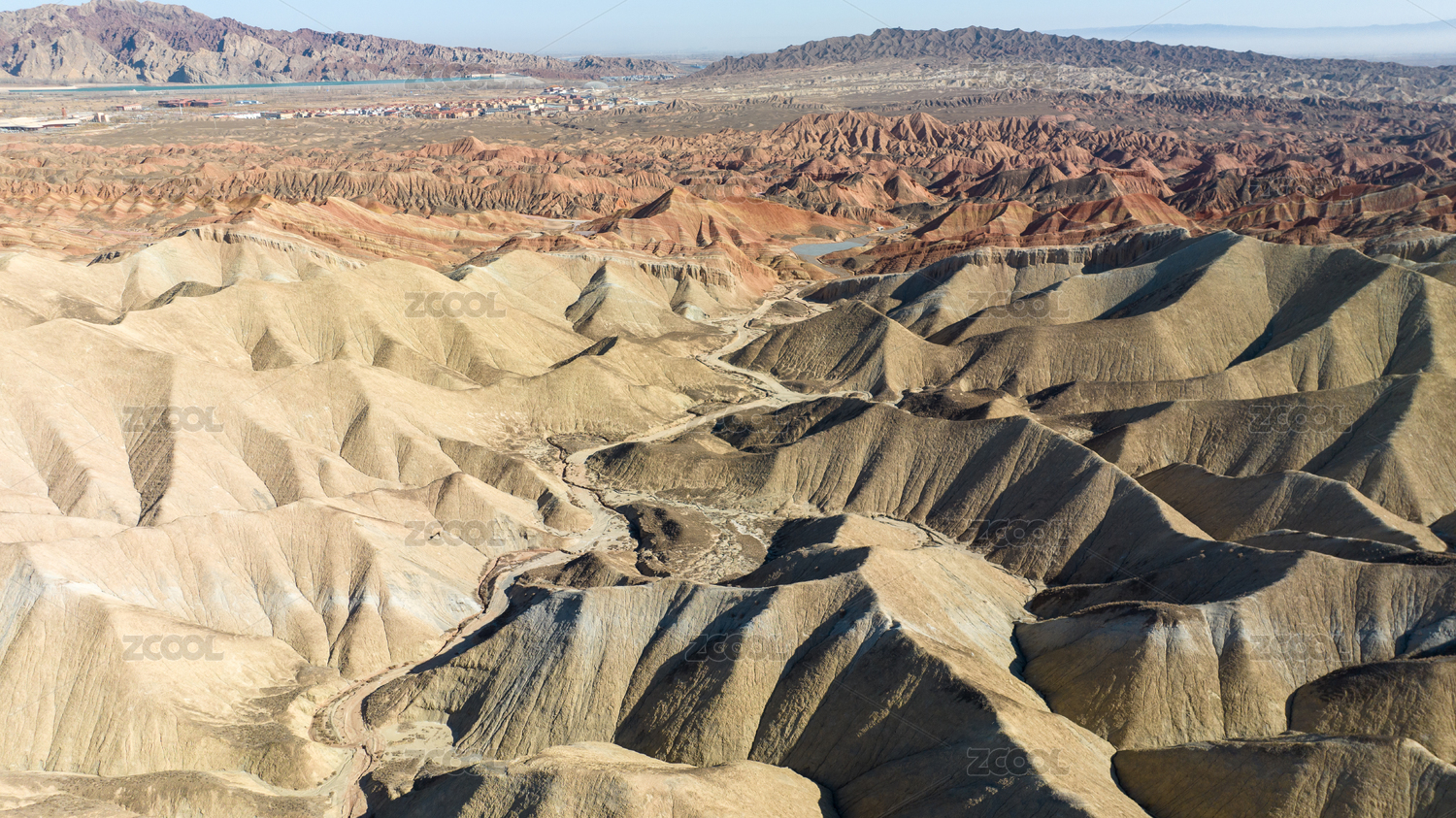 航拍中国甘肃省张掖市七彩丹霞地貌