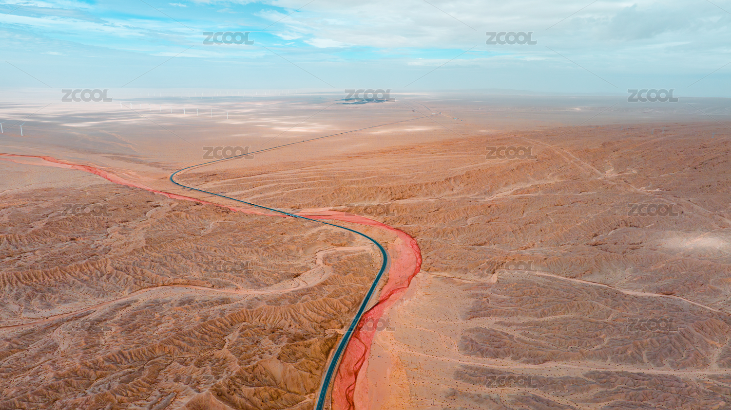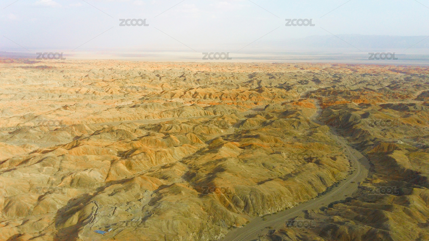 中国,新疆,阿克苏,丹霞地貌,航拍,俯视,公路,无人,荒芜,地质