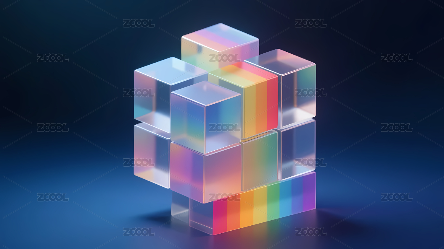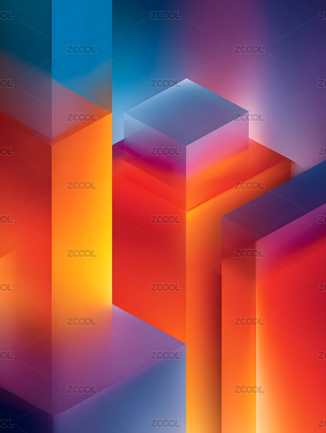 蒸汽波荧光色抽象虚化几何体图案3D立体图