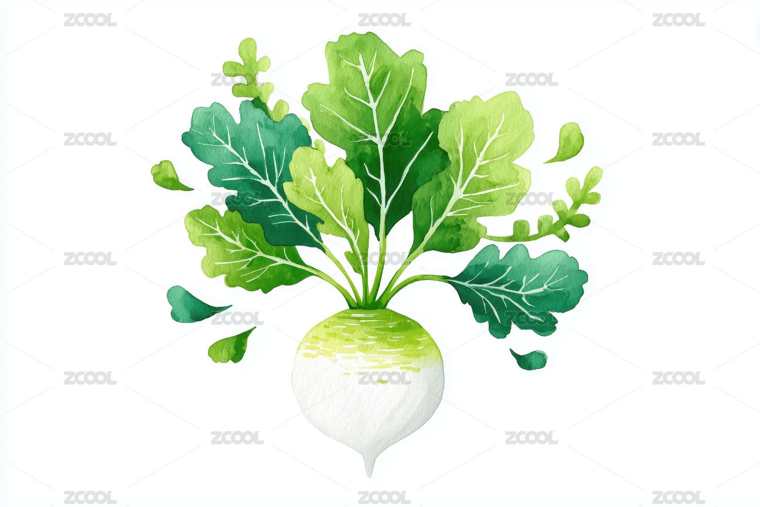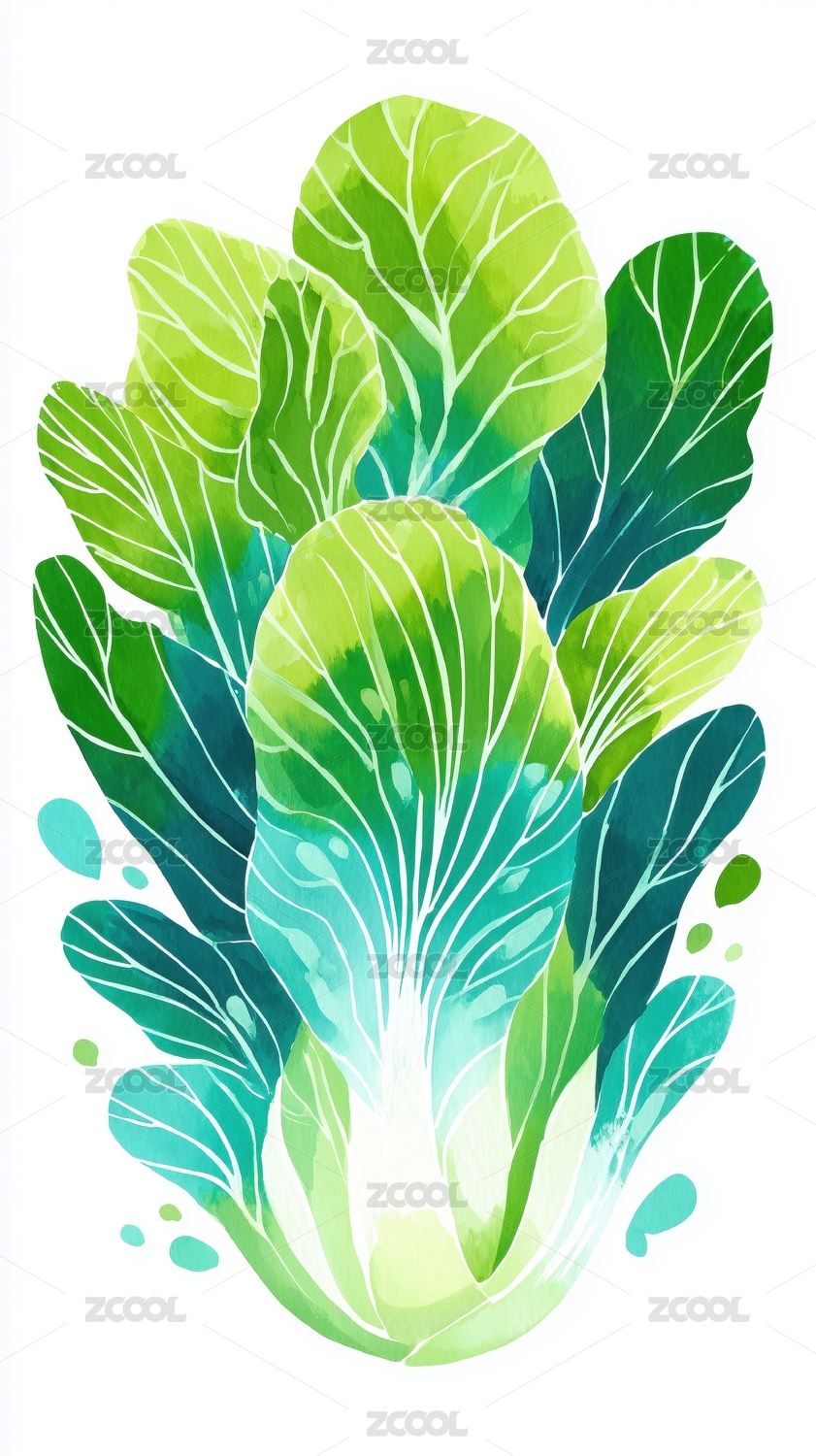 白背景新鲜白菜有机蔬菜手绘扁平水彩插画