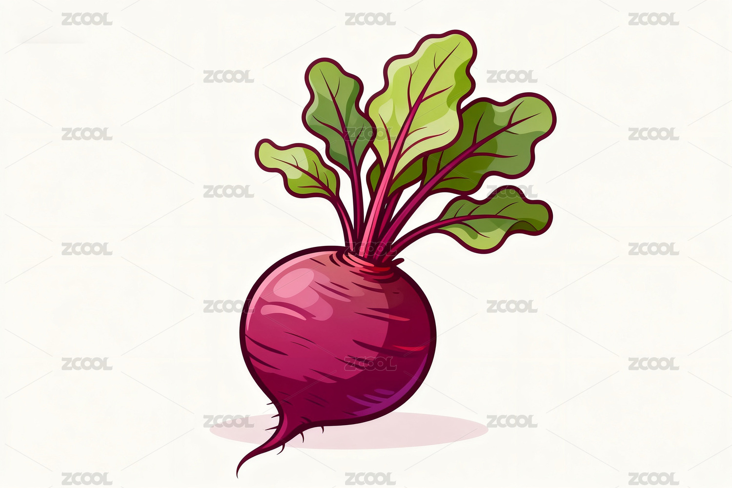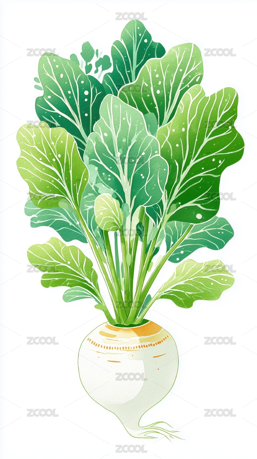 清新明亮田地里新鲜的萝卜白菜蔬菜插画绘画