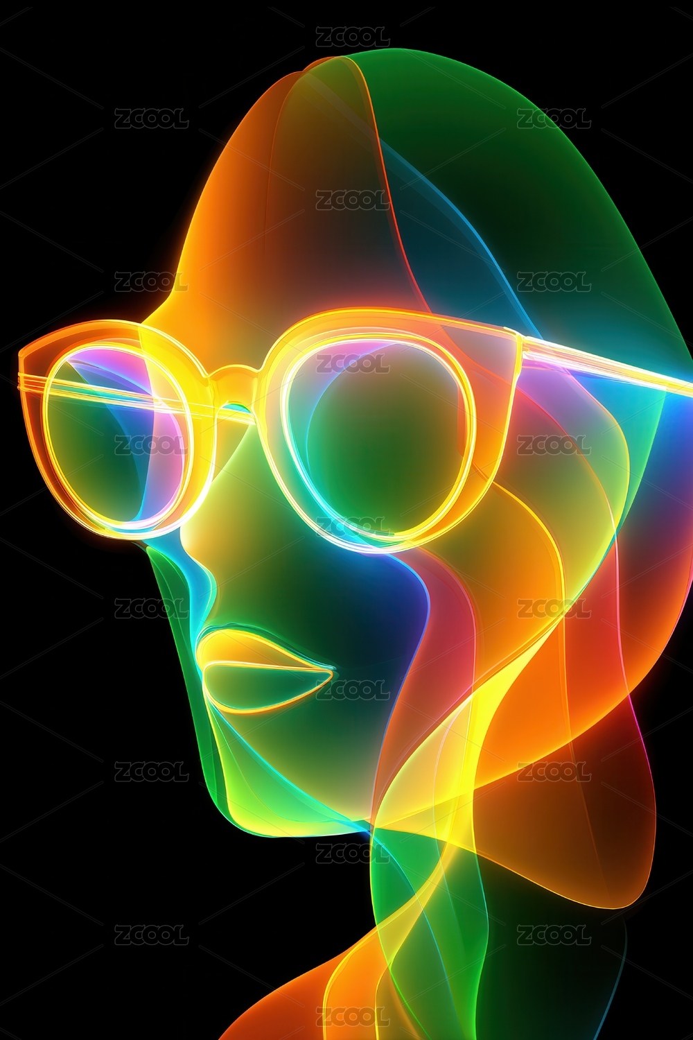 黑背景戴眼镜男青年荧光色女性人物赛博头像