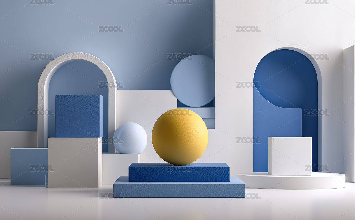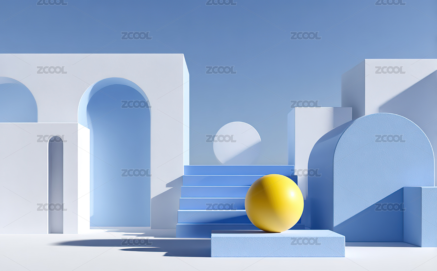 光影,几何,白色,蓝色,抽象,立体,结构,空间,现代,设计