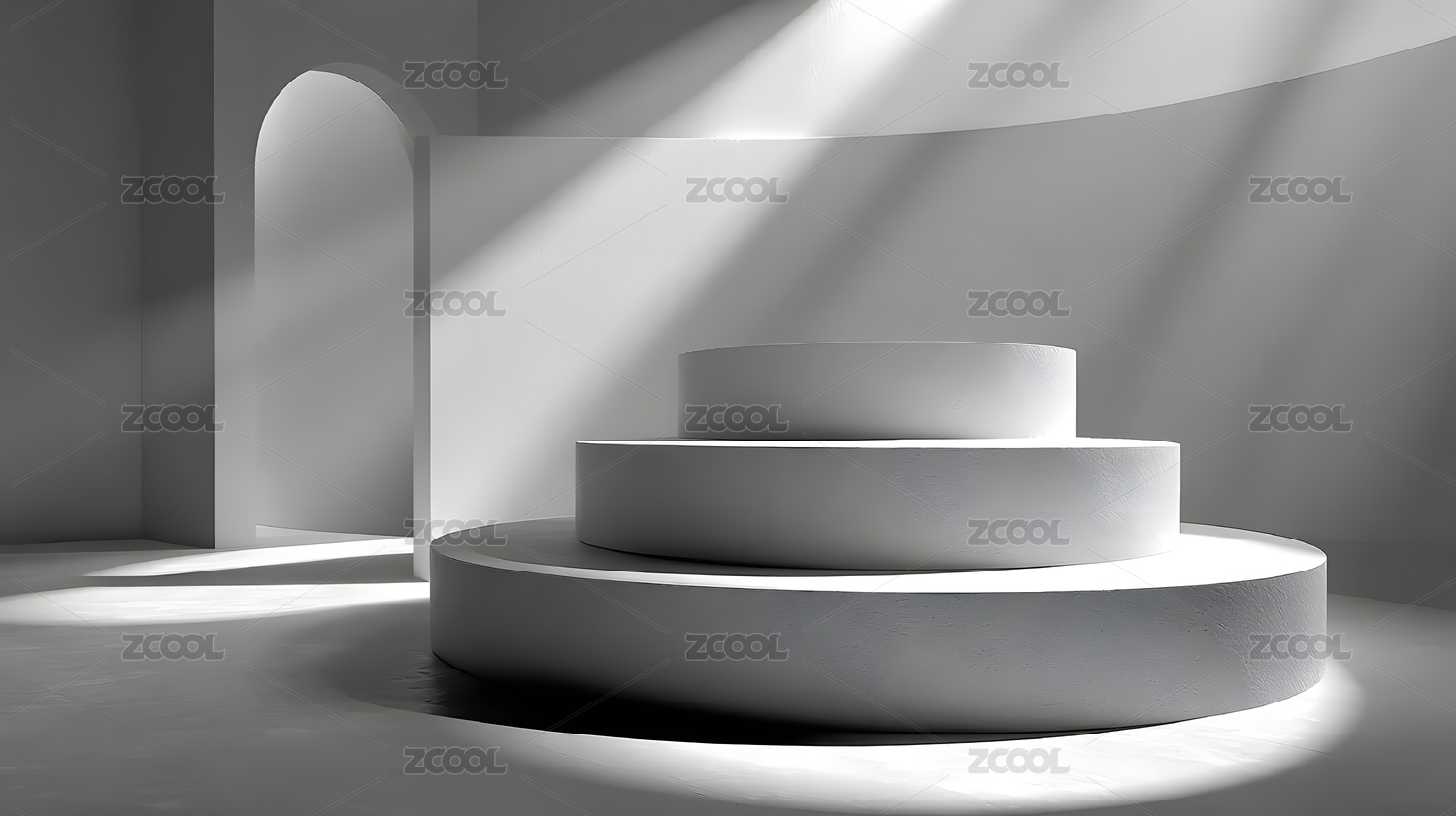 白色几何展台场景