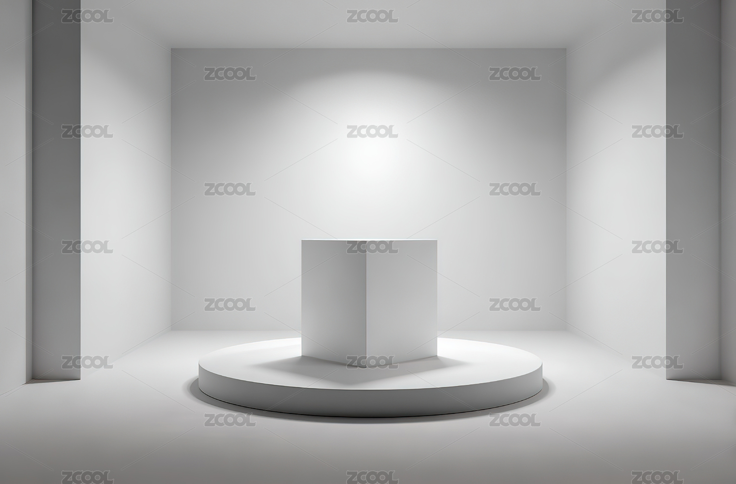 白色立方体与圆台展示