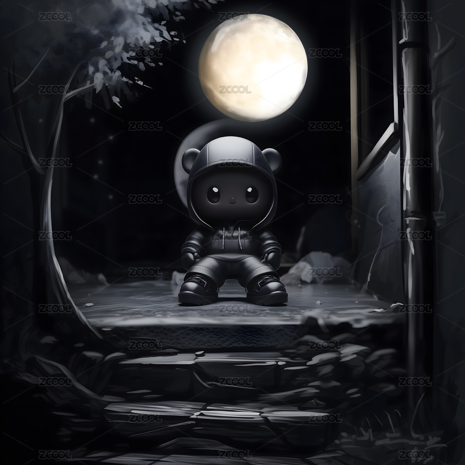 萌死神,艺术,设计,月夜,孤寂,萌趣,暗黑,插画,风格,创意