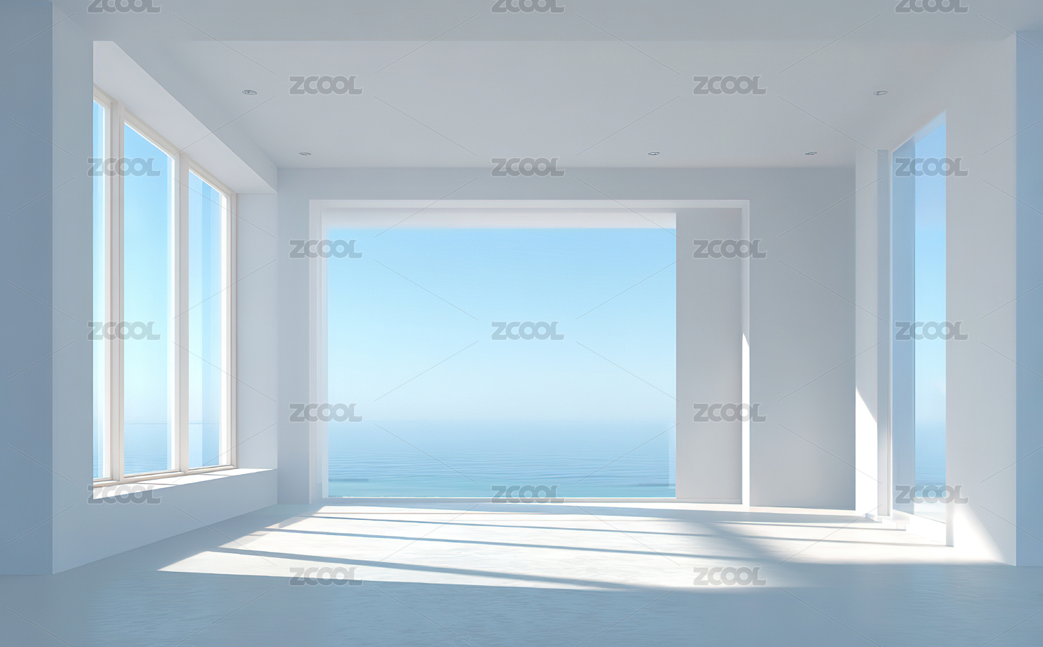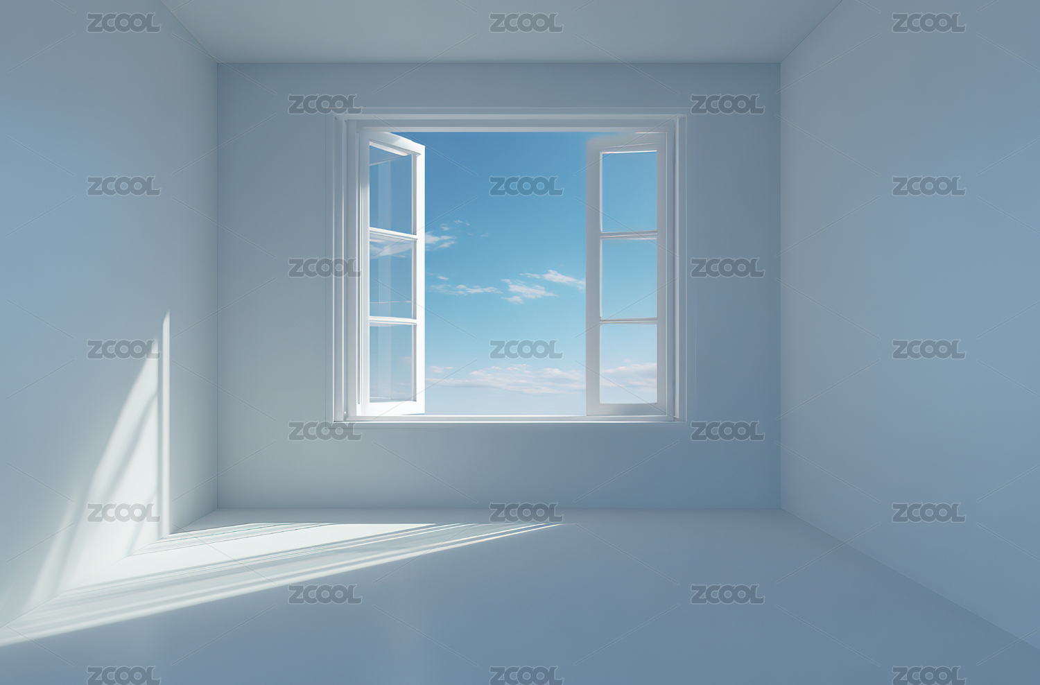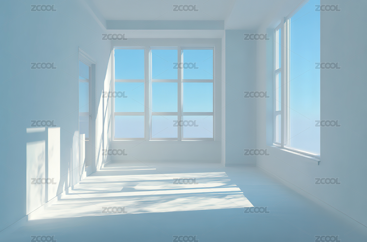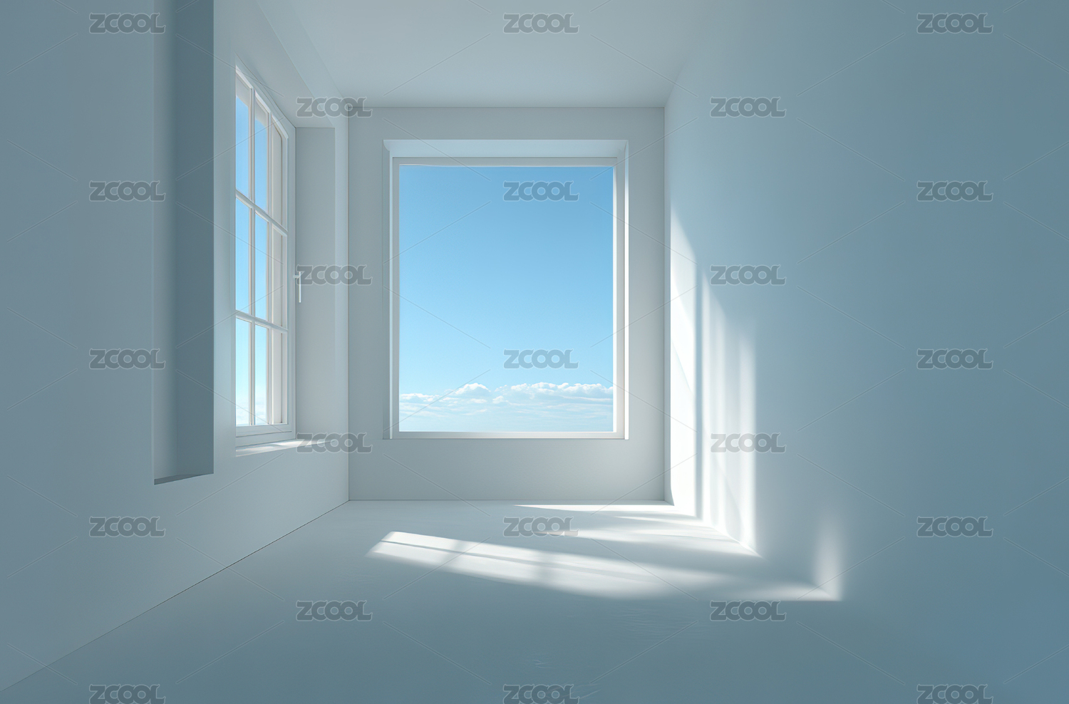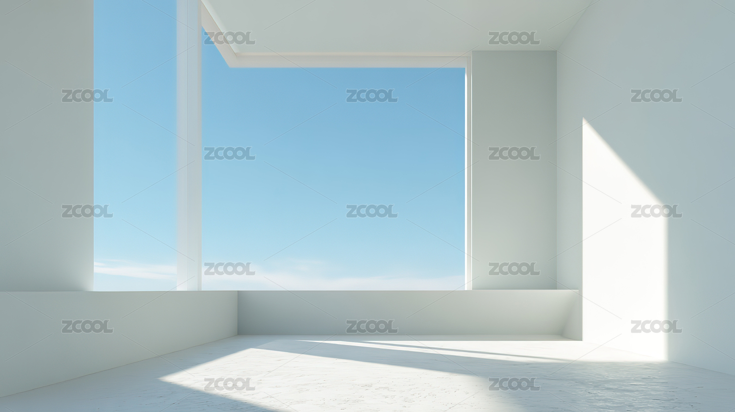 明亮空房间与窗外蓝天
